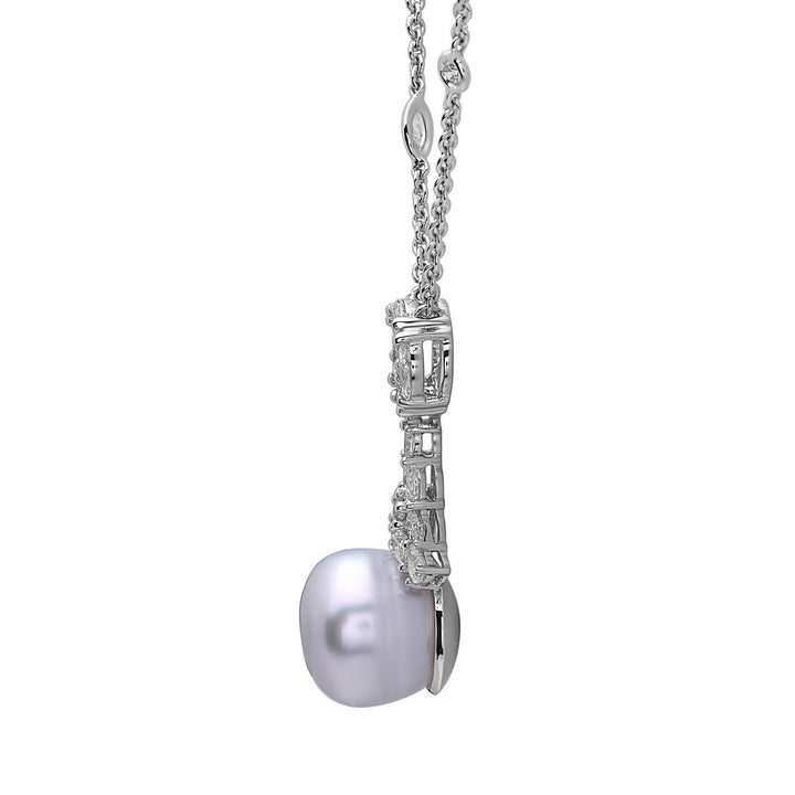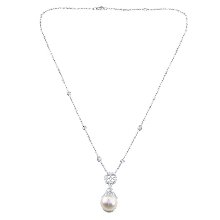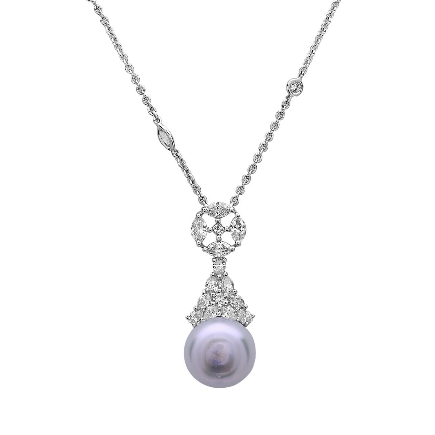 This handmade choker necklace is crafted from 18k white gold. It features 1.74 cts of rose-cut diamonds and 16.97 cts of pearls.