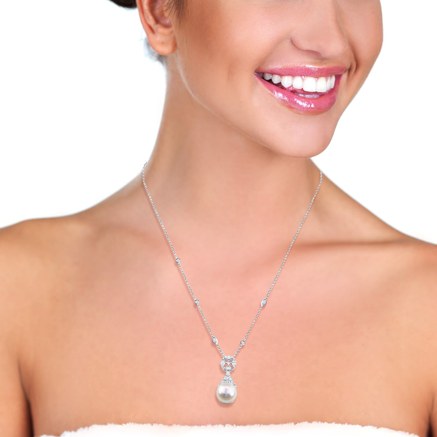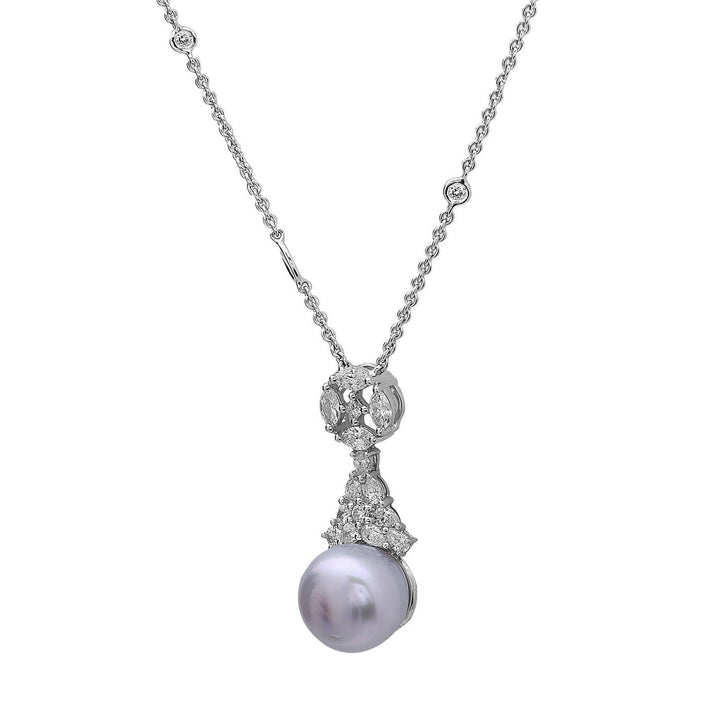 Rose Cut Diamond & Pearl Gemstone Choker Necklace In White Gold