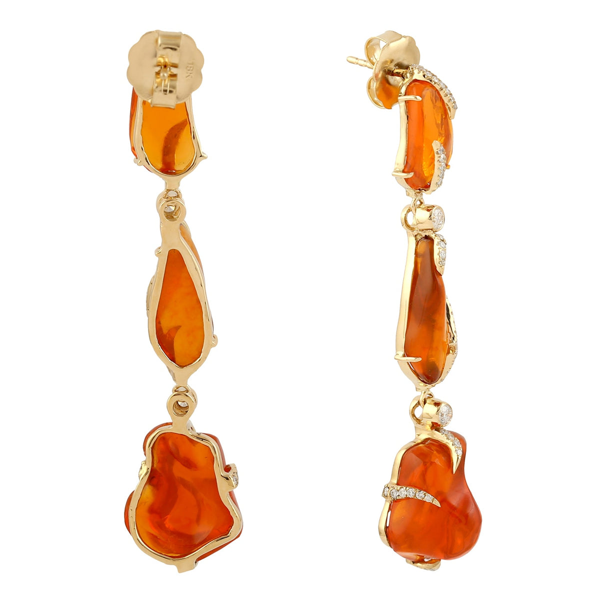 Unshaped Dangle Earrings With Natural Fire Opal & Pave Diamonds By Artisan