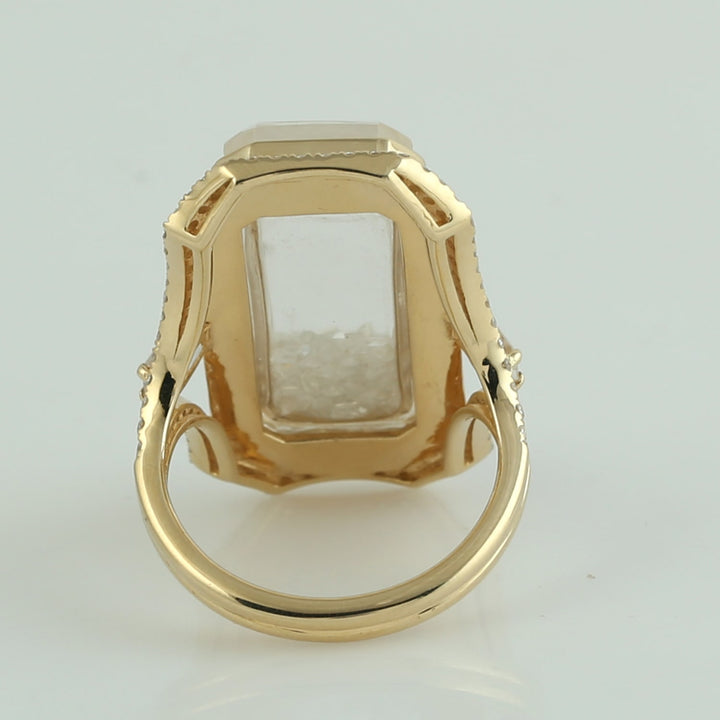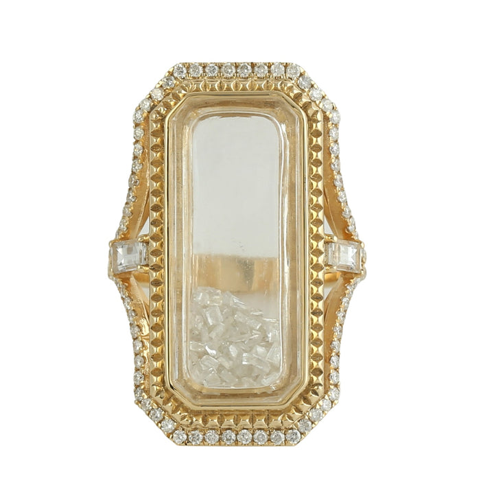 14K Yellow Gold Baguette Sapphire & Glass Pave Diamond Cocktail Ring