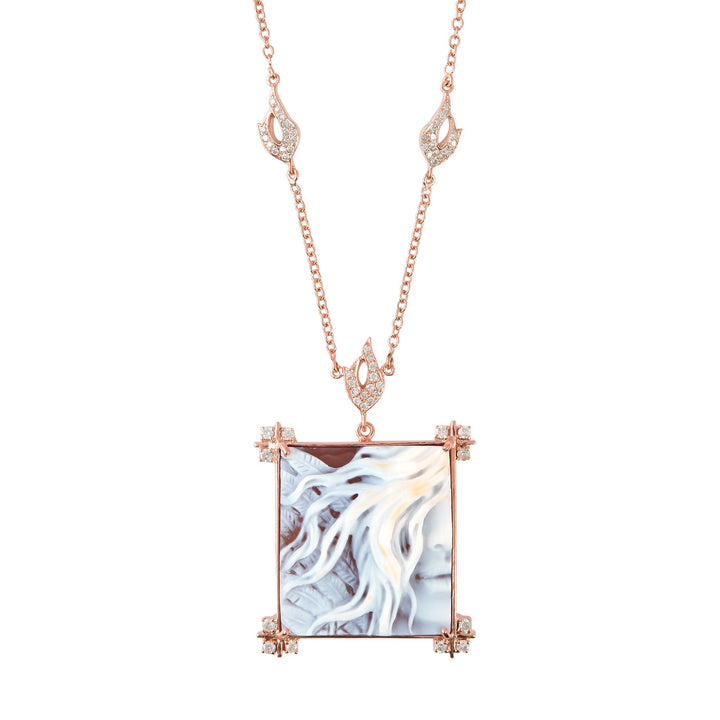 Carving Shall Cameos Pave Diamond Choker Necklace In Rose Gold