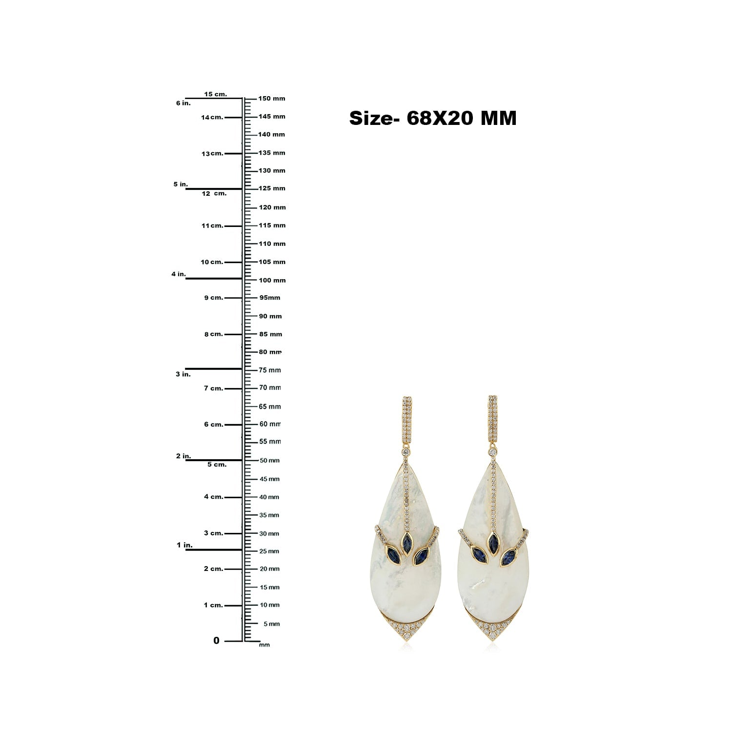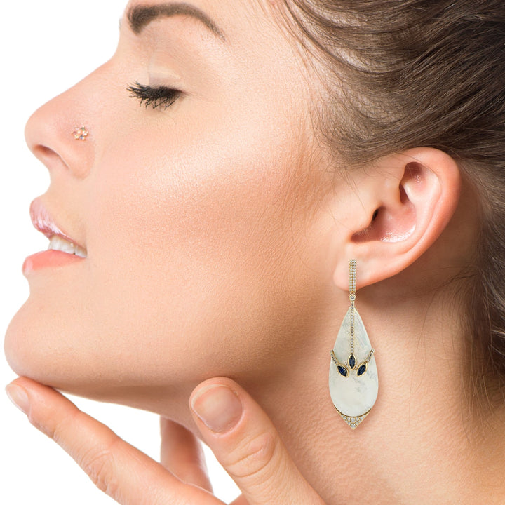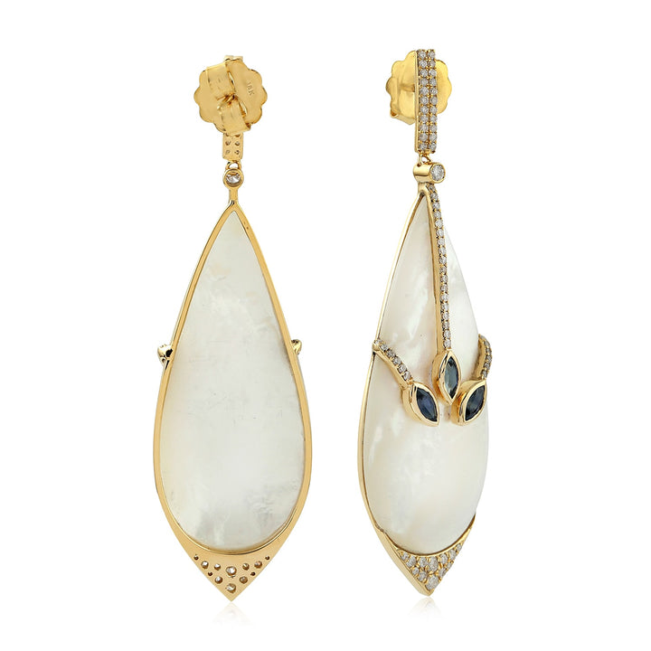 Mother Of Pearl & Blue Sapphire Pave Diamond Dangle Earrings In Yellow Gold