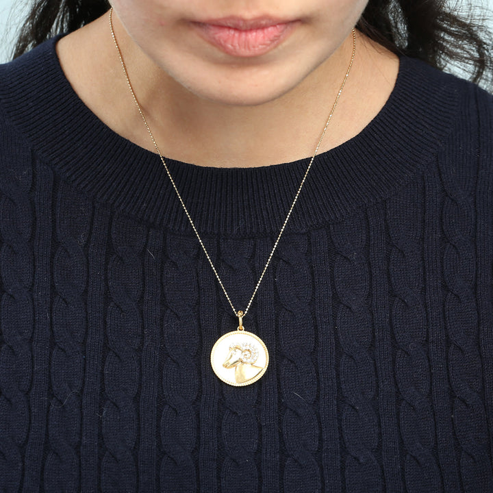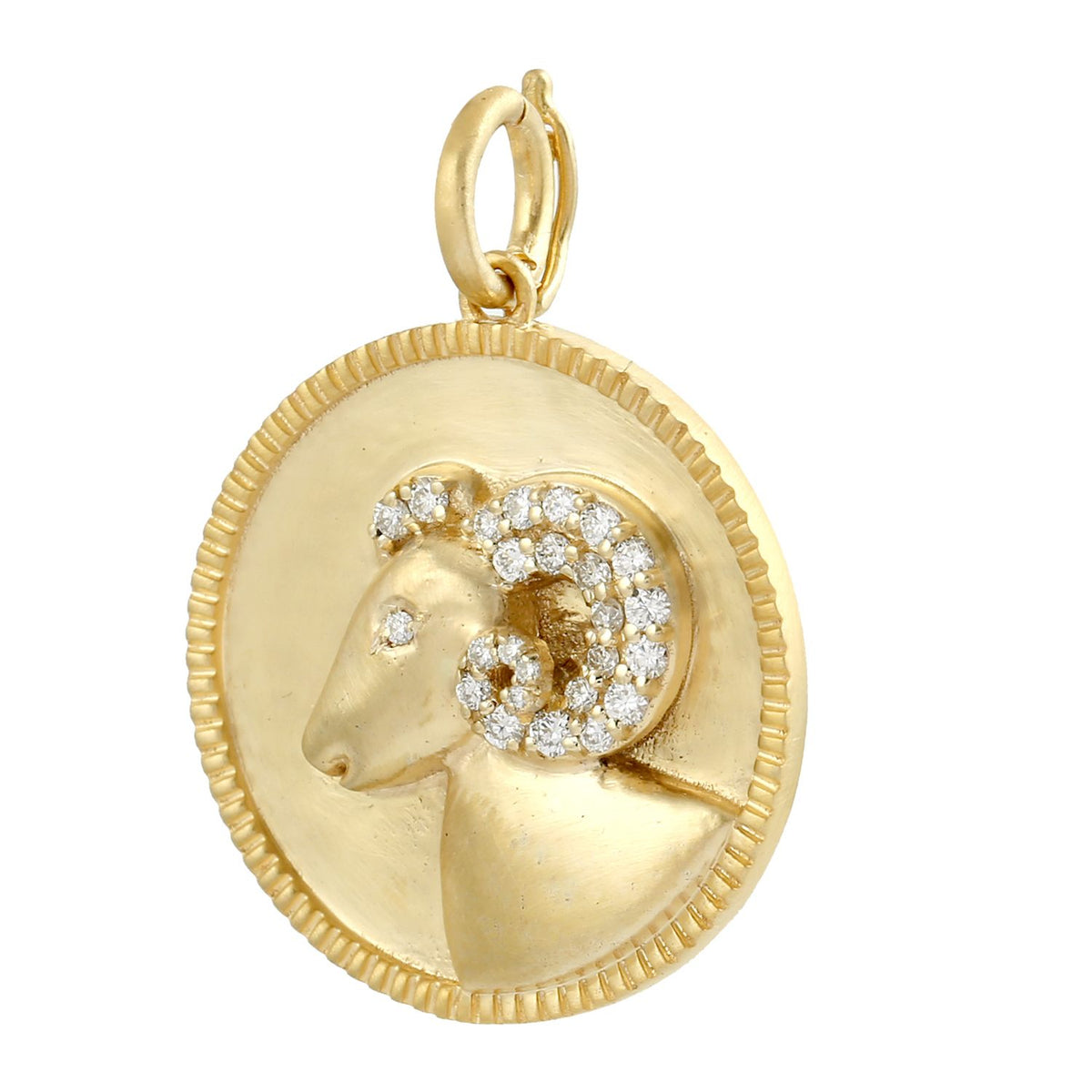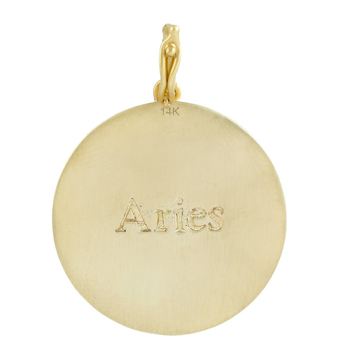Natural Diamond Aries Zodiac Sign Pendant In 14K Yellow Gold