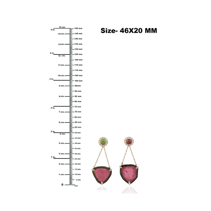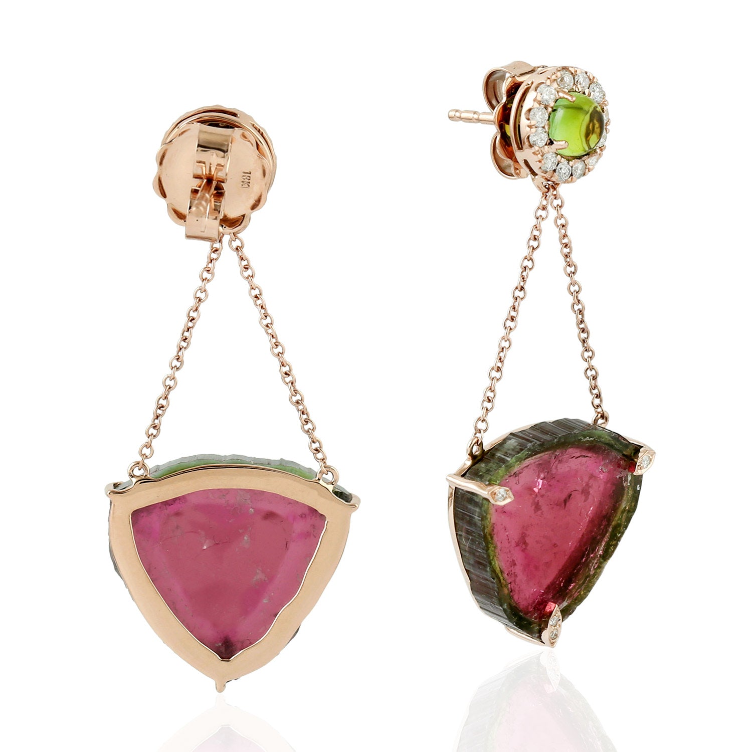 Multi Tourmaline & Melon Tourmaline Diamond Dangle Earrings In Rose Gold
