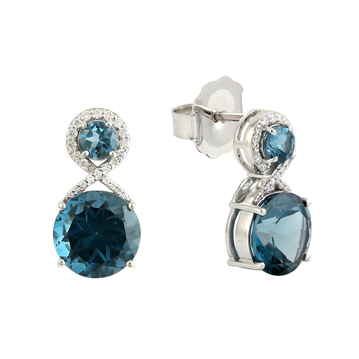 London Topaz & Pavé Diamond Dangle Earrings In White Gold – Fine Jewelry