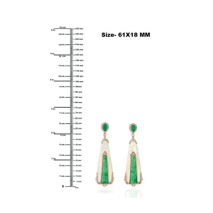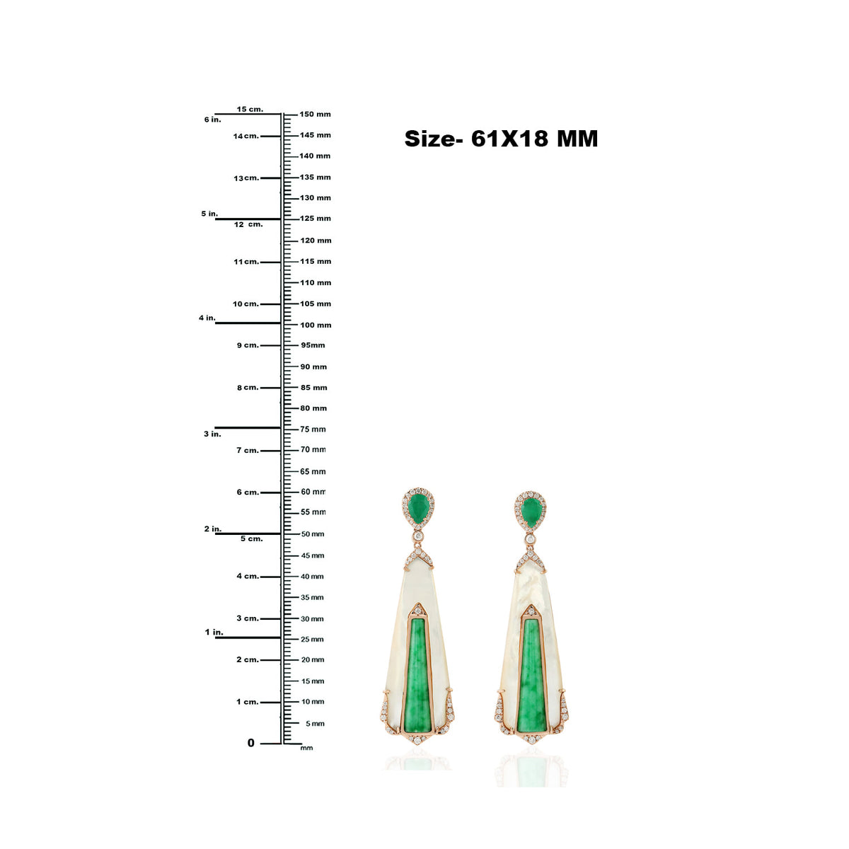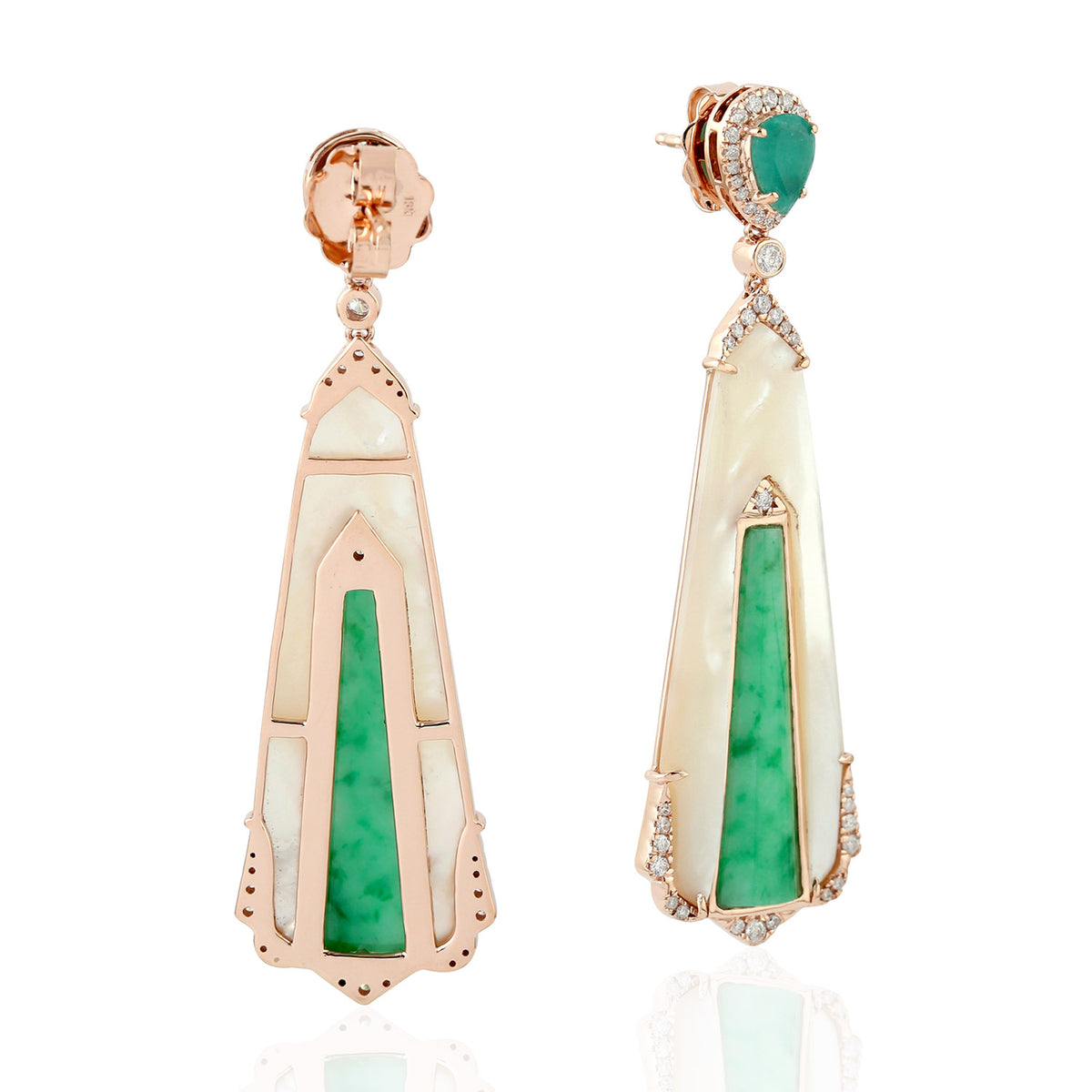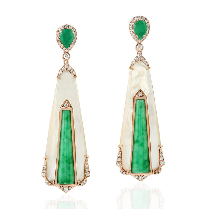 Mop & Jade Pear Cut Emerald Pave Dangle Dangle Earrings In Rose Gold