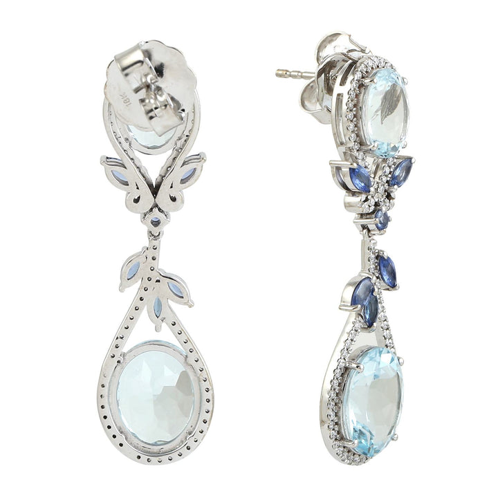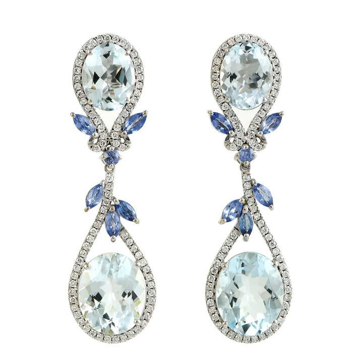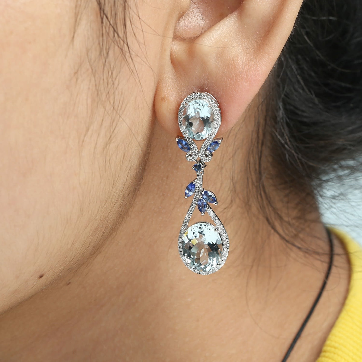 Aquamarine & Blue Sapphire Pave Diamond Dangle Earrings In White Gold