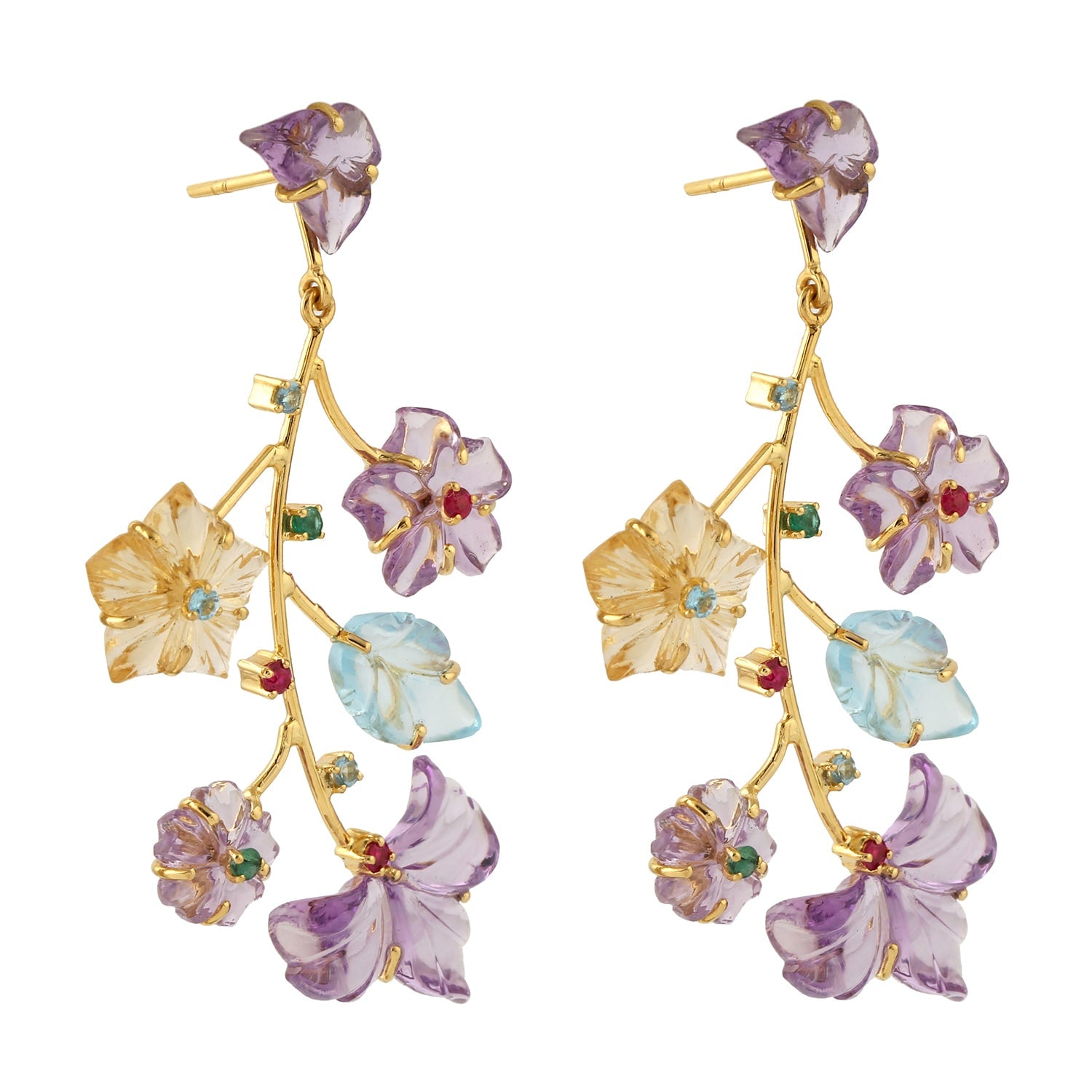 Carved Amethyst & Multi-Gemstone Chandelier Earrings In Gold – Floral Statement Fine Jewelry
