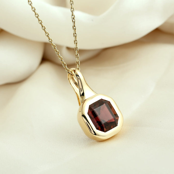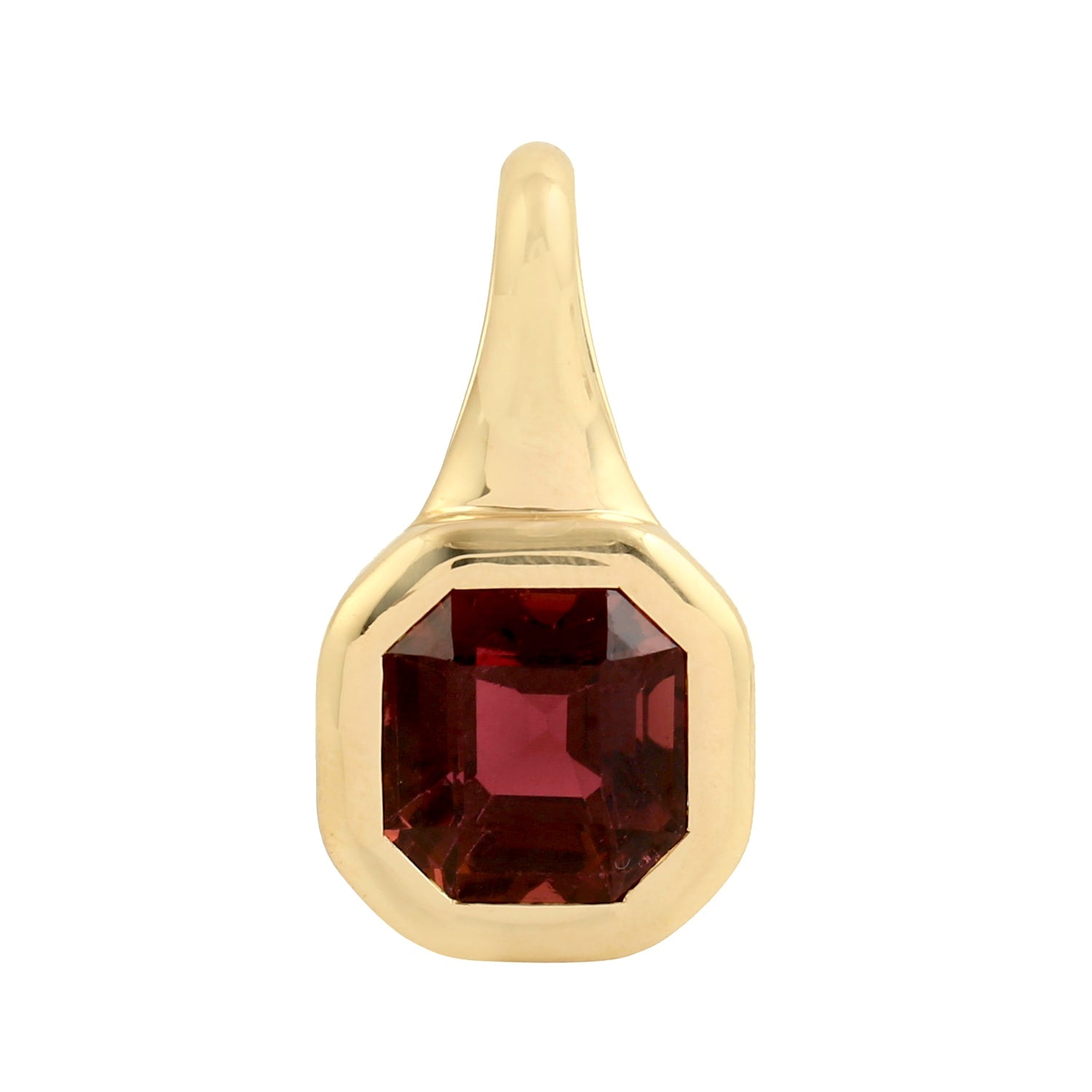 18K Yellow Gold Garnet Pendant – Bold & Minimal Charm For Modern Elegance