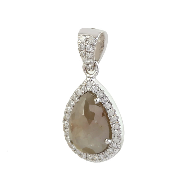 18K White Gold Teardrop Rose-Cut Diamond & Halo Pendant