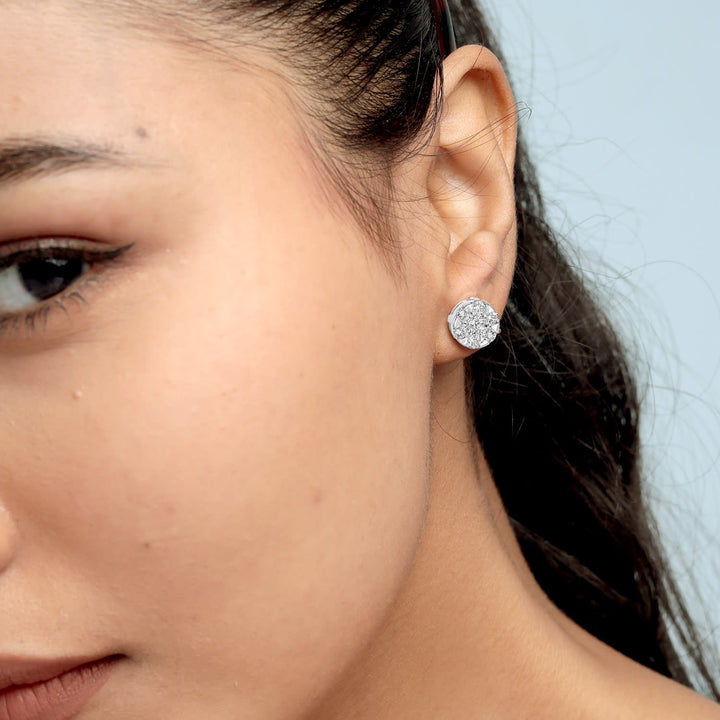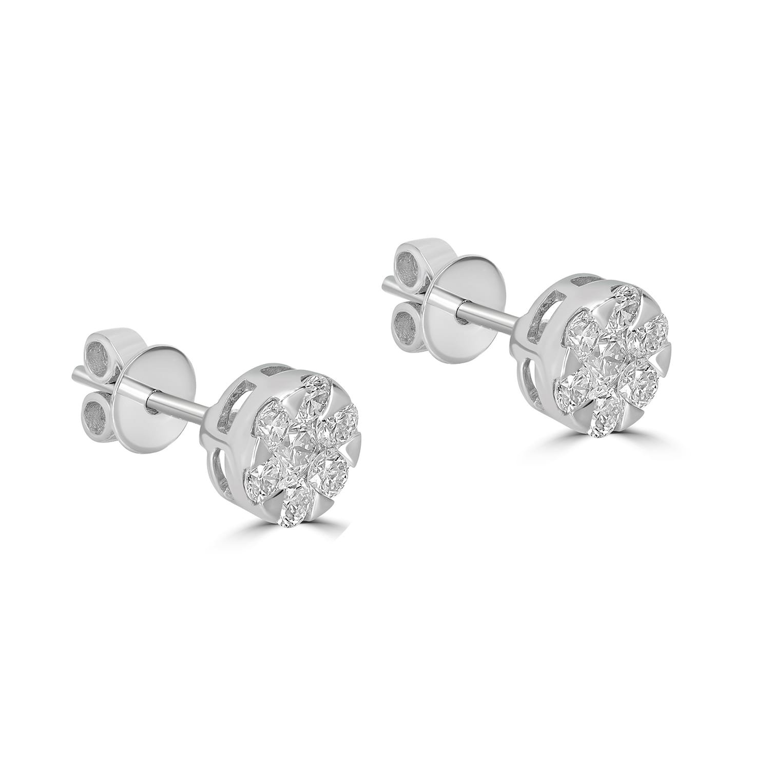 18K White Gold Diamond Floral Cluster Stud Earrings