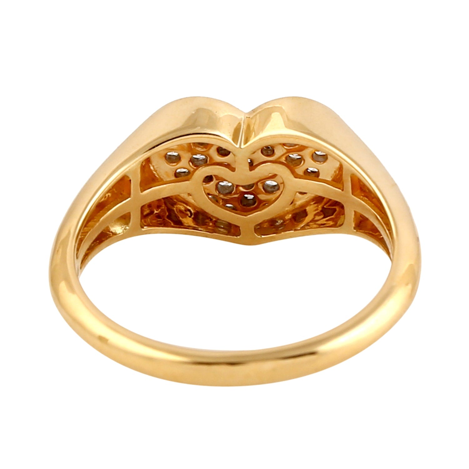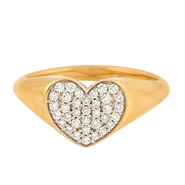 This 18K Yellow Gold Heart Shape Diamond Ring by Artisan is a beautiful testament to love and devotion. The timeless heart motif, encrusted with shimmering natural diamonds, is designed to radiate brilliance with every movement. This ring is a romantic and dainty piece, making it a perfect choice as a promise ring, anniversary gift, or a symbol of eternal love for everyday wear.