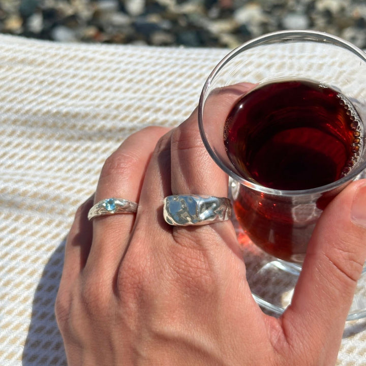This Echo Silver Ring by Assuwa is a stunning piece with a romantic and evocative narrative. Inspired by the myth of Echo, the ring is designed to be a voice for your deepest, unspoken desires. Its bold, sculptural design is both modern and timeless, reflecting a strong, heartfelt aesthetic. This ring is a perfect personal talisman, symbolizing the importance of expressing one's true emotions and desires.