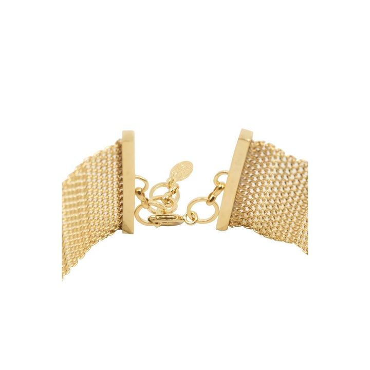 The Wire Mesh Choker Necklace by Atelier Petites Pierres is a luxurious and unique accessory. The choker is crafted from hand-braided wire mesh, giving it an intricate and sophisticated design. Made from high-quality gold-filled brass, it's a durable and elegant piece perfect for layering or wearing as a solo statement.