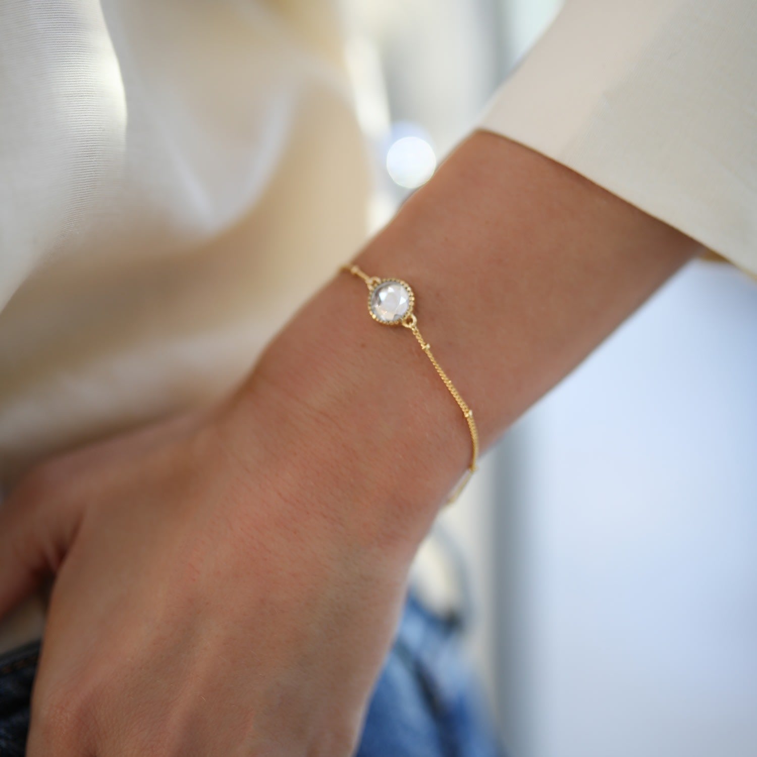 Handcrafted from 18k yellow gold vermeil on sterling silver, this beaded bracelet features a single crystal gemstone.