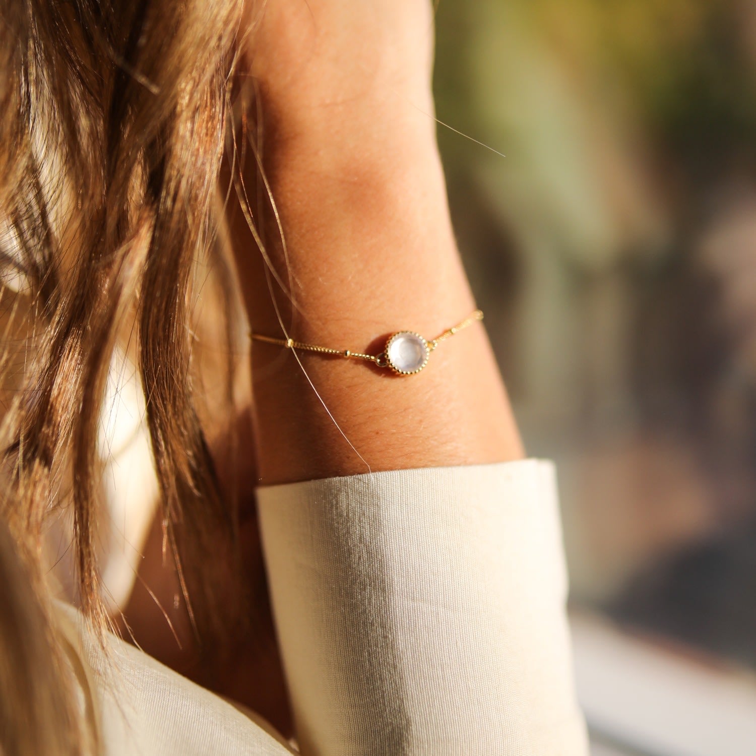This Barcelona October Birthstone Bracelet by Auree Jewellery is a new addition to the Barcelona Birthstone Collection. It features a rose-cut rose quartz gemstone nestled in a beaded polished gold vermeil setting. Rose quartz, the stone of the heart, has a soft pink hue that goes with any complexion and is said to be a token of unconditional love.