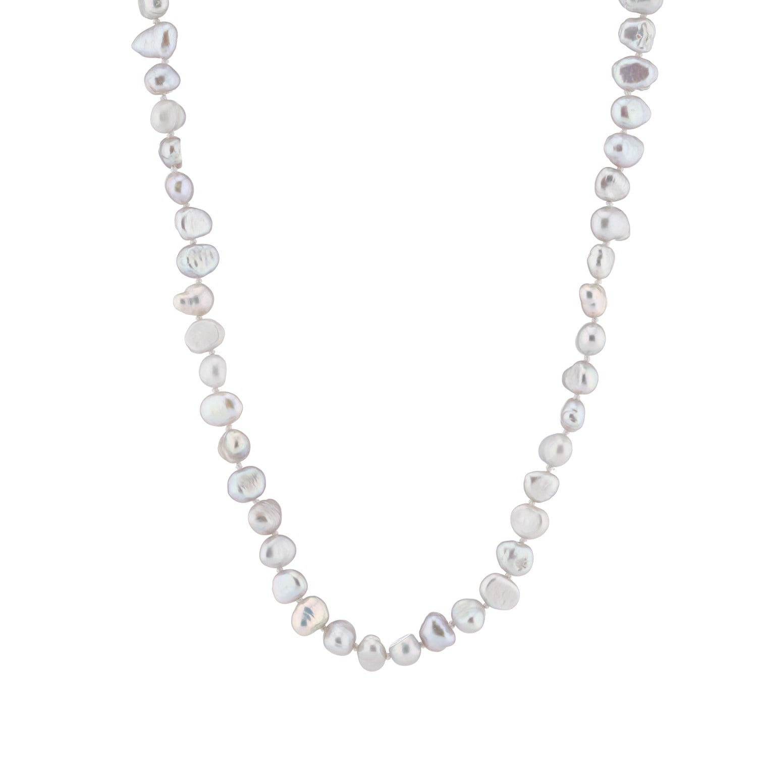 This Alderley Grey Pearl & Sterling Silver Necklace by Auree Jewellery is a unique and classic piece. It features naturally shaped freshwater grey nugget pearls on an adjustable sterling silver chain. The grey pearls have a beautiful iridescent and luminous quality, making this necklace a special and elegant accessory that can transform any outfit.