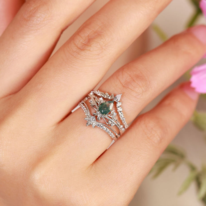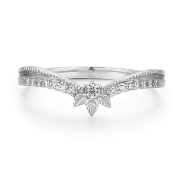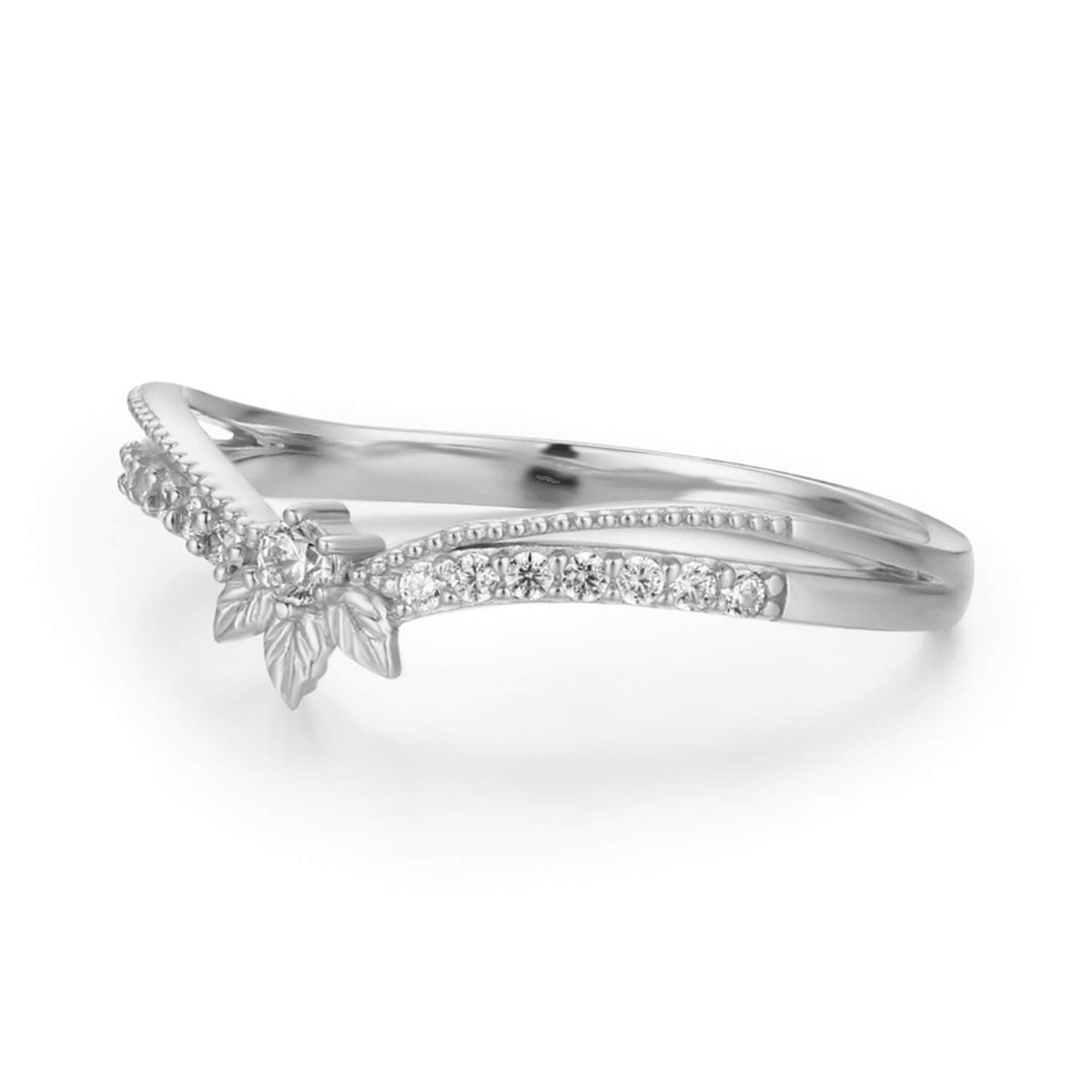 The Abloom Stacking Band Solid White Gold by Azura Jewelry New York is a stunning and versatile ring. Made from 10k solid white gold, it features sparkling gems and a center fan-shaped sculpted leaves design. This ring is perfect for stacking with other rings but also stands out on its own, bringing out the best in you.