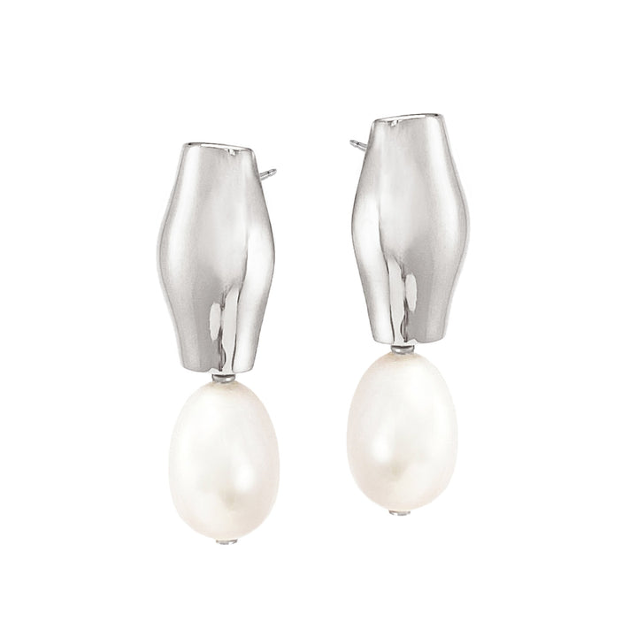 These Amphora Pearl Studs by Biko are a sculptural statement inspired by the curvaceous forms of ancient amphoras. These sleek, rhodium-plated studs feature a delicate drop of freshwater pearl that adds light and movement to your look. Made in Canada, they are a timeless and elegant accessory that offers a journey to the Old World with a contemporary twist.