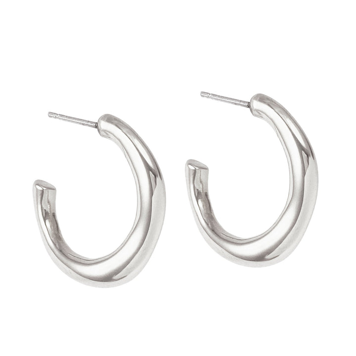 These Rio Hoops Medium - Silver by Biko are a vibrant and energetic piece, infused with the lively and spirited energy of Rio. Their subtle molten wave design, handcrafted from a custom-cast baroque pearl, gives them a unique, organic feel. These hoops are designed to become your new daily go-to, inspiring your most spirited self and adding a touch of artistic, modern elegance to your look.