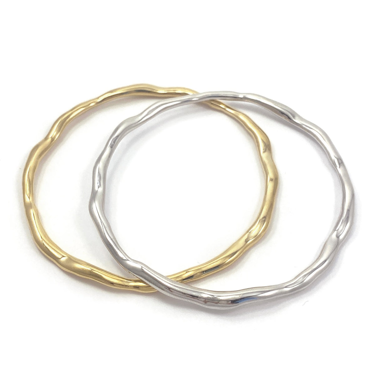 This bangle is rhodium-plated over brass and features a handcrafted, organic molten wave inspired by a custom-cast baroque pearl.