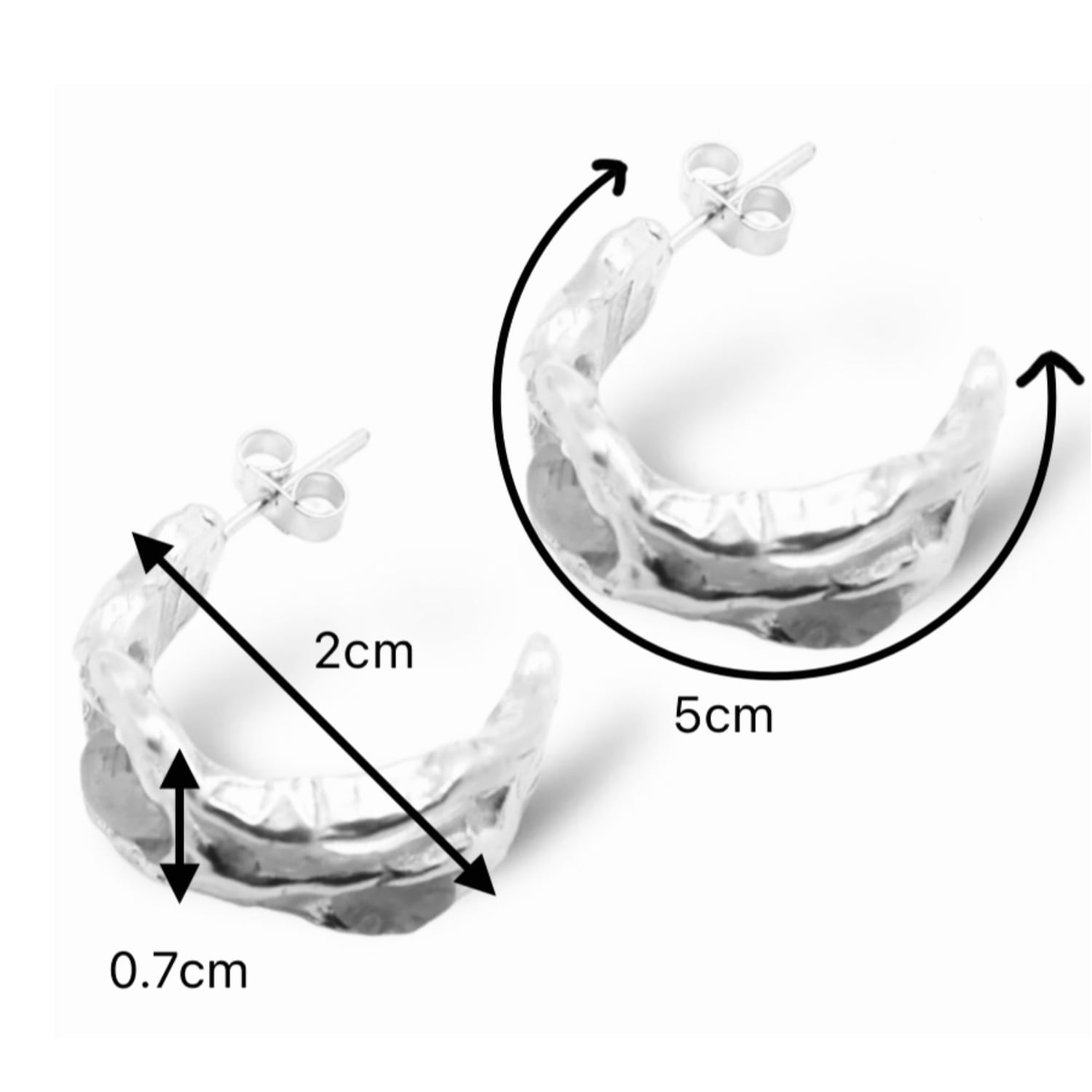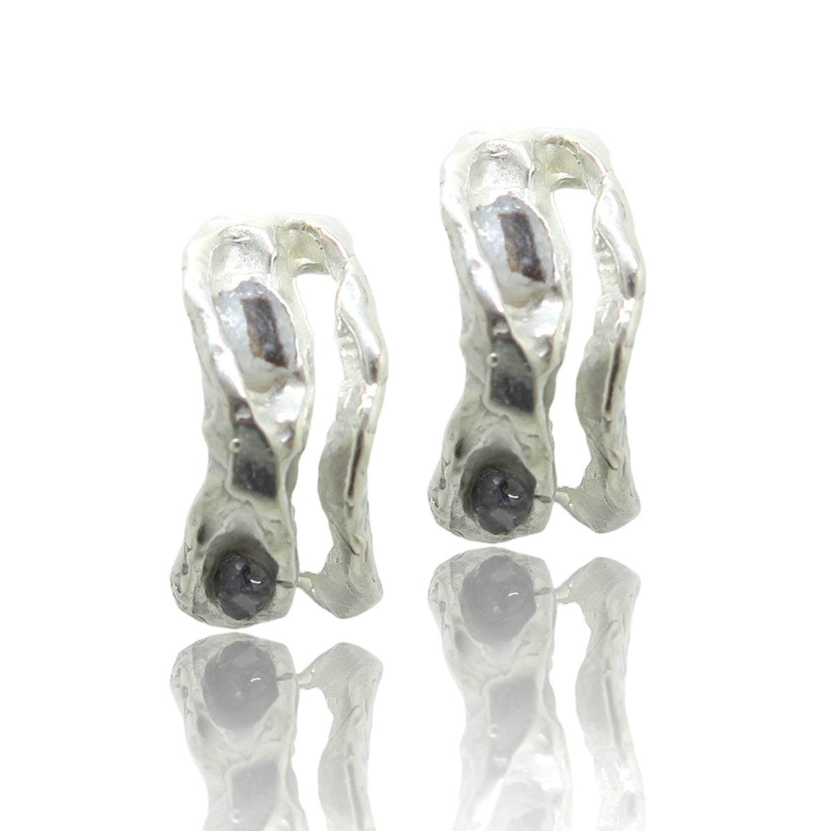 These c-hoop earrings are handmade from recycled sterling silver. They feature Bio-Gems formed from plant fibers and have a butterfly stud scroll.