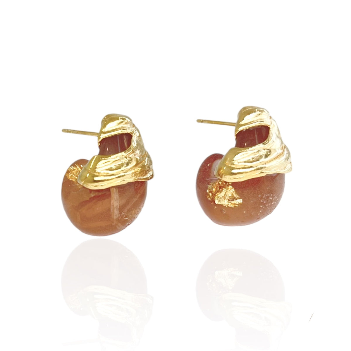 These Galvani Gold Blush Bio-Gem Hoops by Bio-Trimmings are a unique and sustainable statement piece. Handcrafted from bio-materials like beetroot-dyed sweetcorn husk and dusted with gold leaf, these lightweight and water-resistant hoops feature a beautiful, translucent Bio-Gem. Inspired by Renaissance art, the recycled sterling silver with thick layers of 18ct gold vermeil elegantly drapes around the gem, creating a truly one-of-a-kind, timeless design.