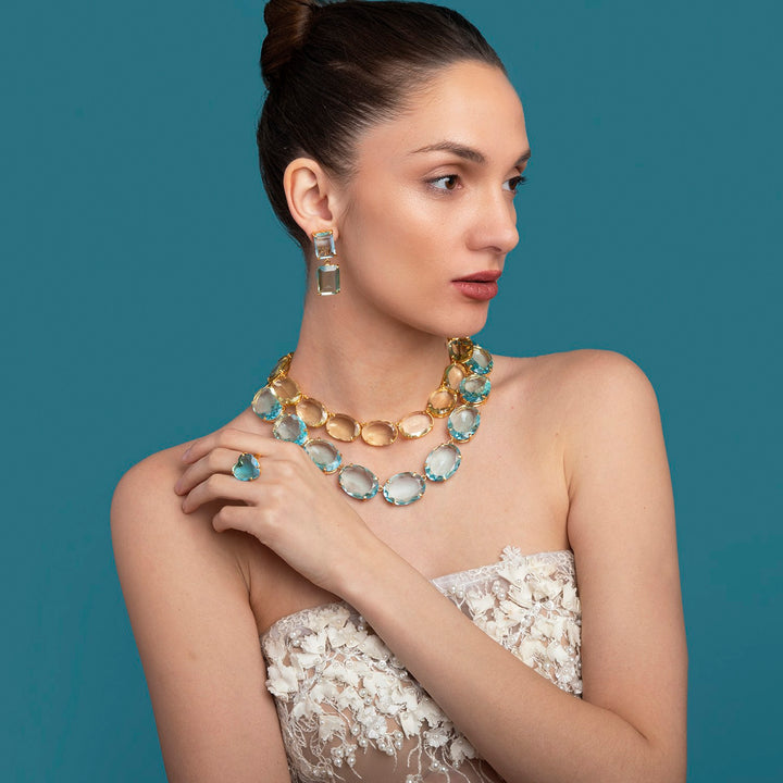 These Renata Earrings Green Amethyst by Bounkit embody understated sophistication. They skillfully combine green and blue quartz for simple elegance. The emerald cut adds a touch of edginess, while the removable drops make them a versatile and timeless addition to your collection.