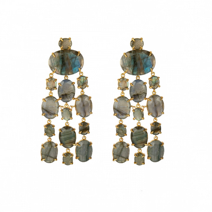 These Marysol Earrings Labradorite Clip On by Bounkit are a captivating and elegant accessory. These top-selling statement earrings feature a stunning arrangement of cascading elements with labradorite. They are a must-have accessory for both special occasions and everyday wear.