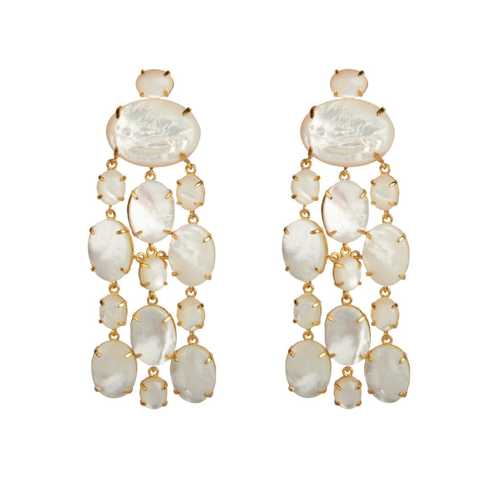 These Marysol Earrings Mother Of Pearl Clip On by Bounkit are a top-selling statement piece with a captivating design. The stunning arrangement of cascading elements, featuring mother of pearl, beautifully captures the essence of elegance and style. These exquisite earrings are a must-have accessory for both special occasions and everyday wear, adding a touch of luxurious, natural beauty and sophisticated grace to any look.