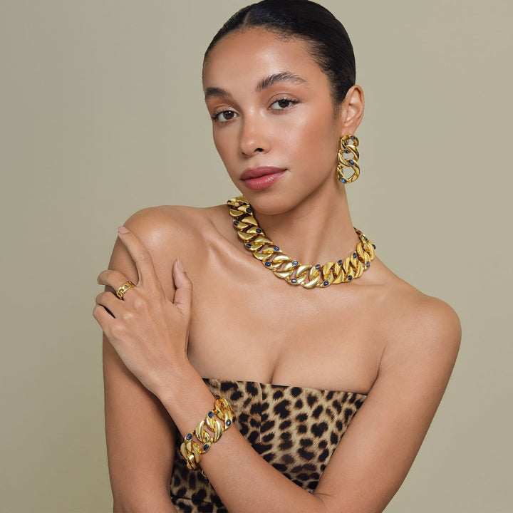 Bounkit is a luxury jewelry brand founded by Moroccan-born designer Hassan Bounkit in 2006, based in New York City. Known for its bold and vibrant designs, Bounkit specializes in handcrafted pieces that often feature semi-precious stones. The brand is particularly celebrated for its versatile, multi-functional jewelry, where pieces like brooches can be transformed into pendants, and necklaces can be worn as belts or bracelets. Each item is meticulously crafted in Bounkit's New York atelier, offering a blend of vintage-inspired elegance and modern-day functionality, making the jewelry a favorite among celebrities and fashion icons.