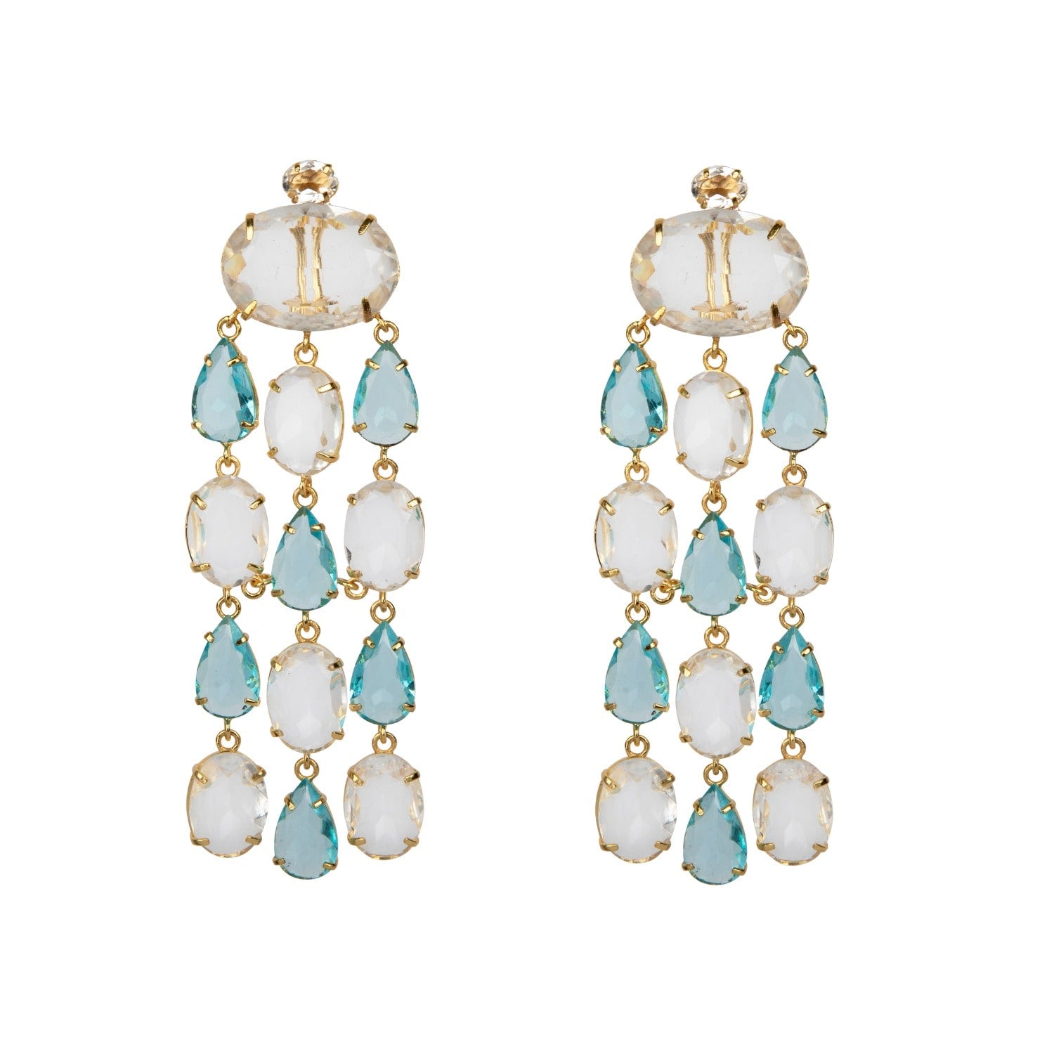 These earrings are crafted from a blue quartz material.