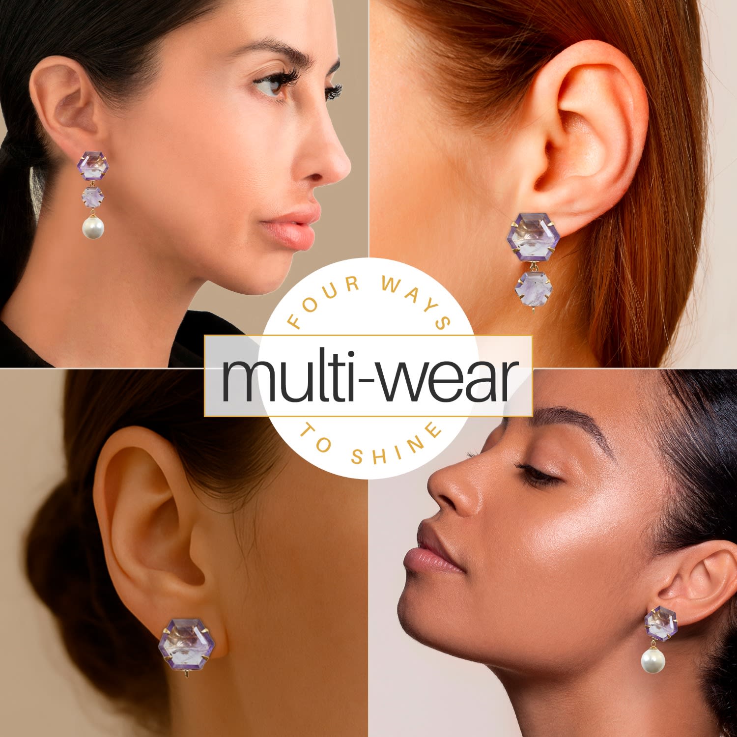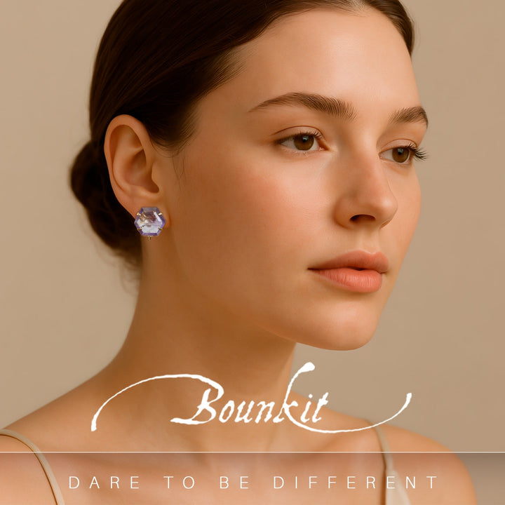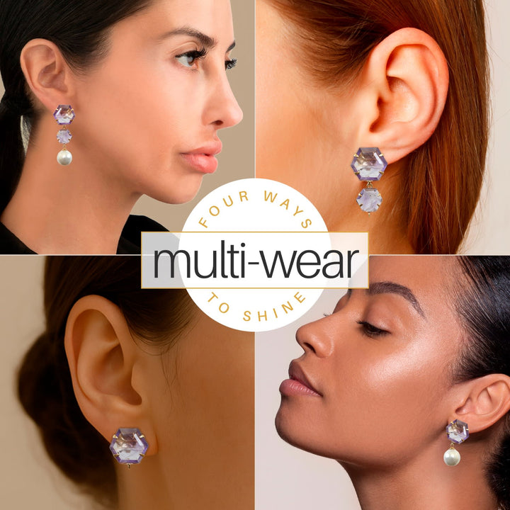 These Boston Earrings Push Back by Bounkit are a serene and versatile accessory that pairs cool amethyst with soft shell pearls. The convertible design allows them to be worn short or long, blending timeless charm with a modern spirit. The amethyst, known for its calming properties, adds a layer of quiet luxury and meaning, making them a beautiful and thoughtful gift to treasure.