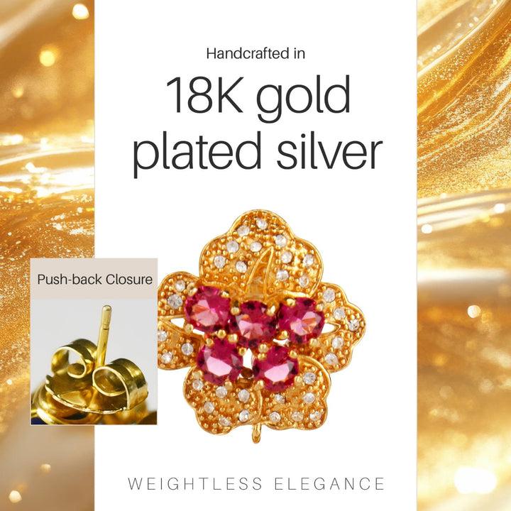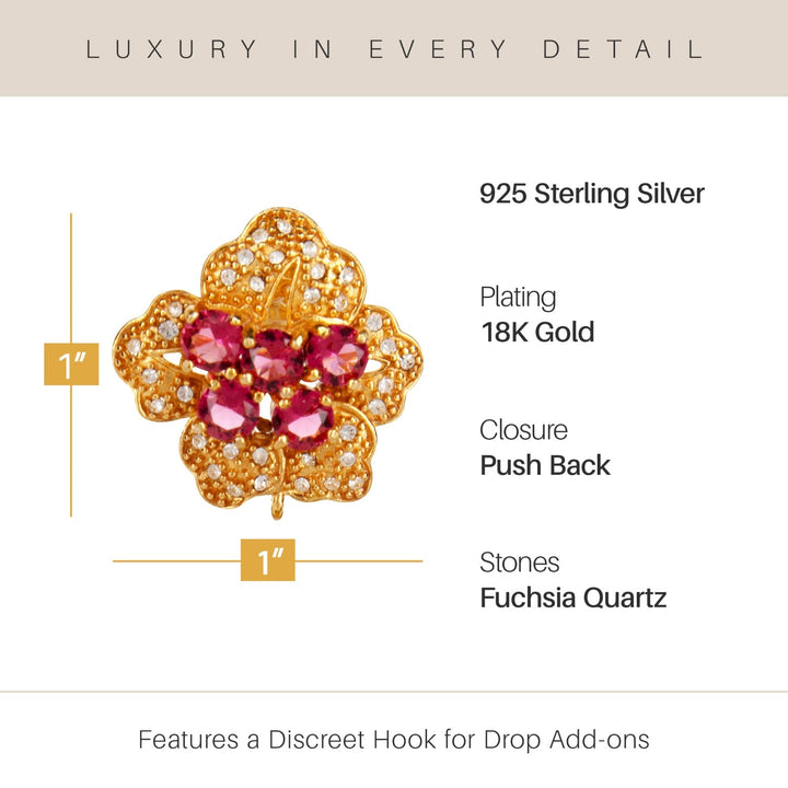 These Fuchsia Bloom Earrings by Bounkit are a vivid and charming statement piece. Their bold floral design, crafted from natural stones, adds a splash of color to any look. Handmade in New York, these studs are lightweight and comfortable for all-day wear. The discreet hidden hook offers versatility, allowing you to add a drop for extra elegance. These earrings are an expression of confidence and craftsmanship, blending a modern hue with a classic, timeless form.