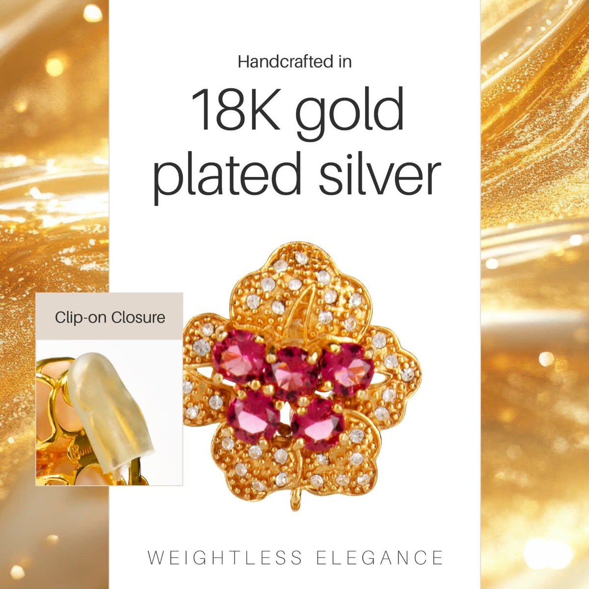 These clip-on earrings are handmade from sterling silver with an 18K gold-plated finish. They measure 1" x 1".