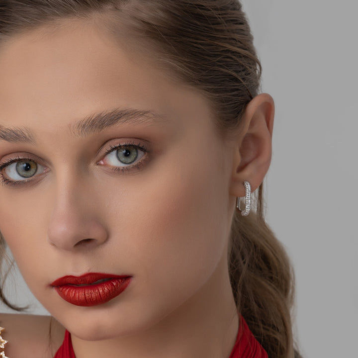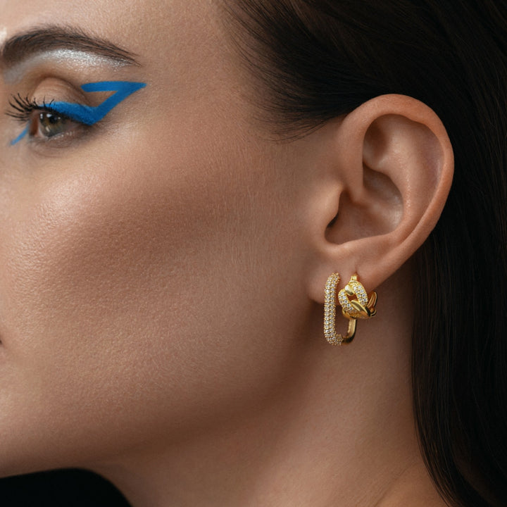 These Pave Rectangular Huggie Earrings by By Eda Dogan are classic huggies with an edgy, vintage-inspired twist. The earrings feature a rectangular shape with rounded edges and are made of 18ct gold-plated vermeil on sterling silver with zircon stones. They add a subtle statement to your curated ear stack.