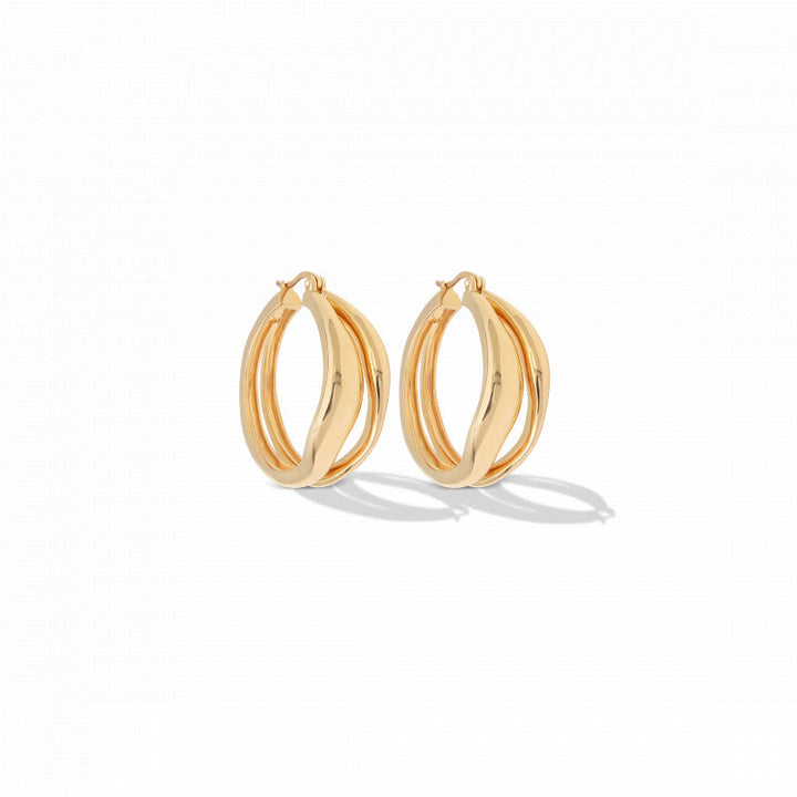 These Saya Assymetric Gold Earring Hoops - Small by By Majime are a true statement piece that elevates any style. Their unique, asymmetrical design gives them a modern and eye-catching allure, while the luxurious 18K gold plated finish adds a touch of sophistication. These small hoops are a versatile and bold addition to your collection, seamlessly blending contemporary design with timeless elegance.