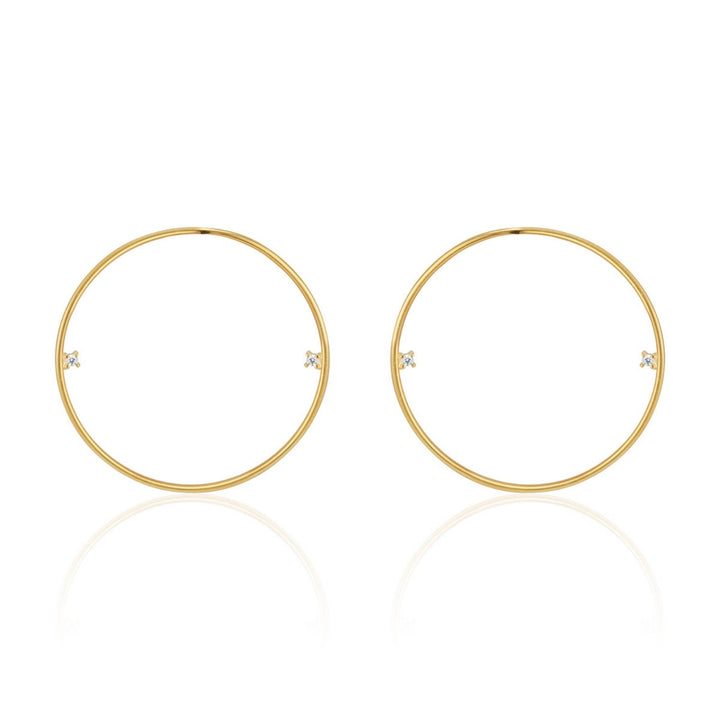 These earrings are handmade from sterling silver with 18-karat gold plating and are set with white cubic zirconia.