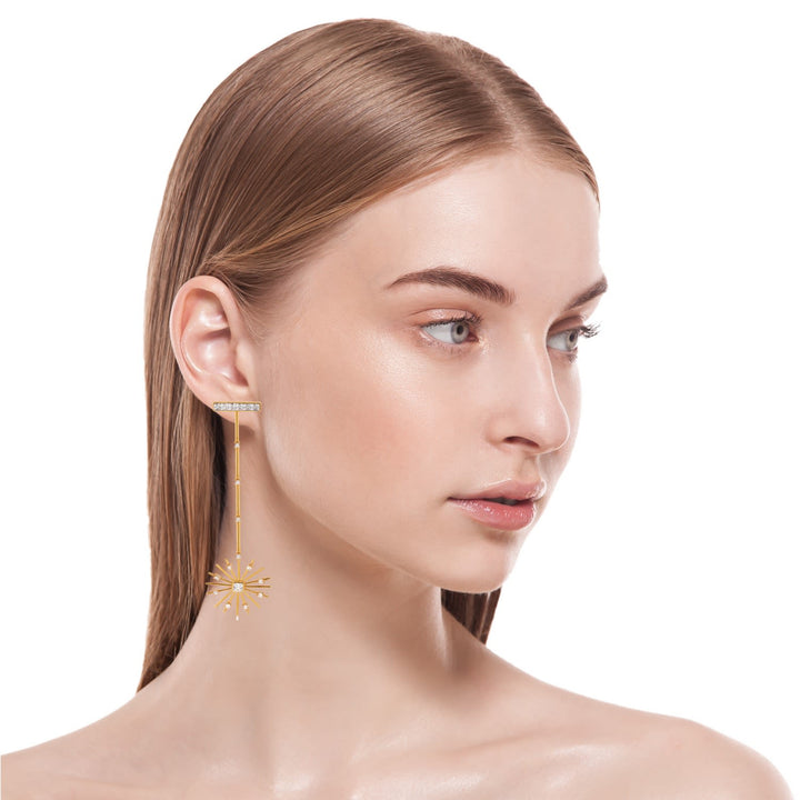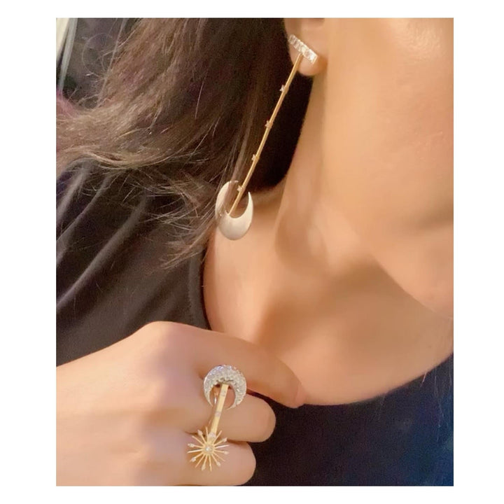 These Morning Star Earrings by Callista by Vinita are a statement mismatch pair. Inspired by the magical sun and the calm moon, these earrings symbolize power and feminine energy. They are a glamorous and unique accessory that will become the centerpiece of your outfit.