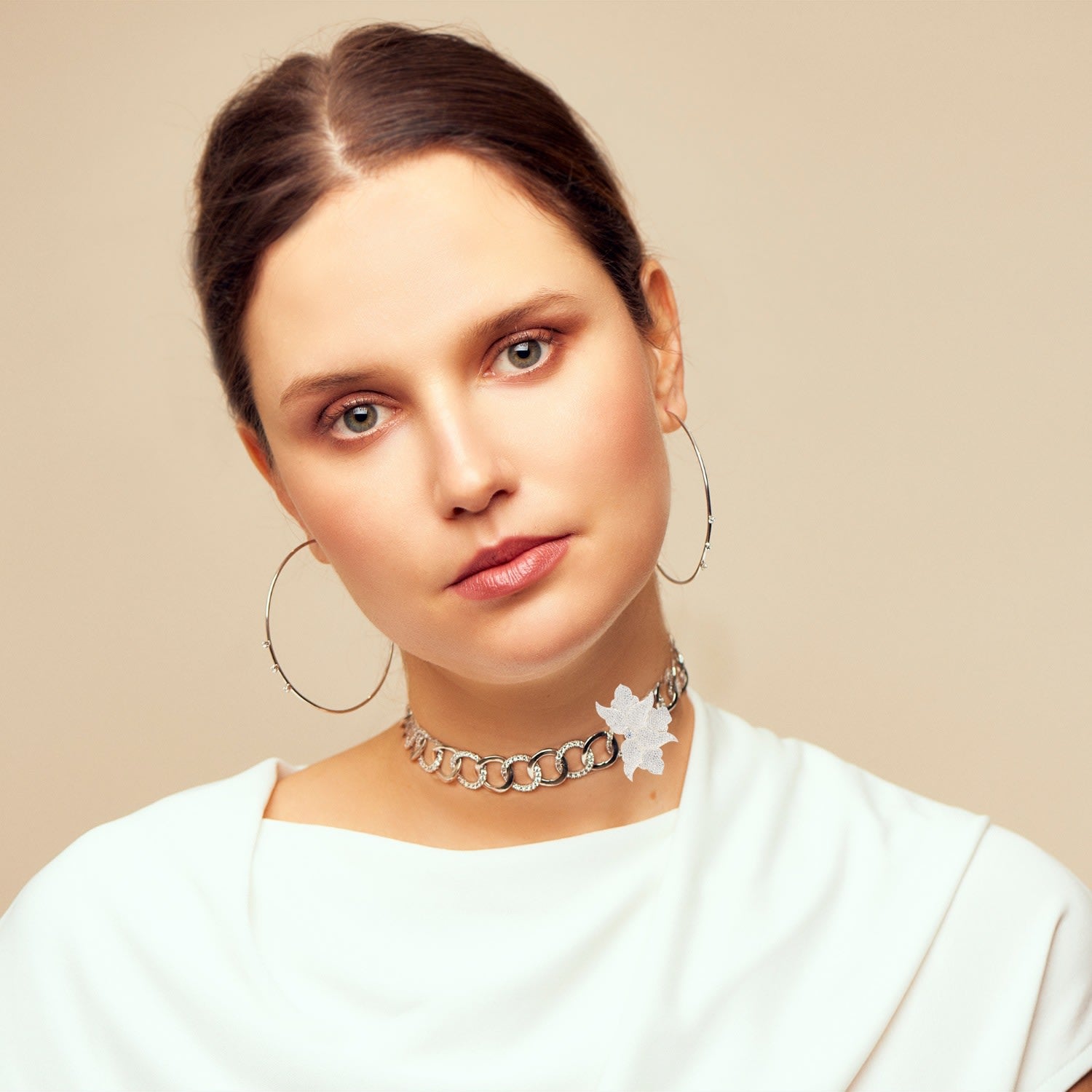 The Half Flower Detachable Choker by Callista by Vinita is a versatile and whimsical accessory. This is a convertible piece that can be worn as a choker necklace with rings or the flower brooch can be worn separately. Inspired by a beautiful flower, the gem-studded brooch is a unique design for those who love urbane jewelry.