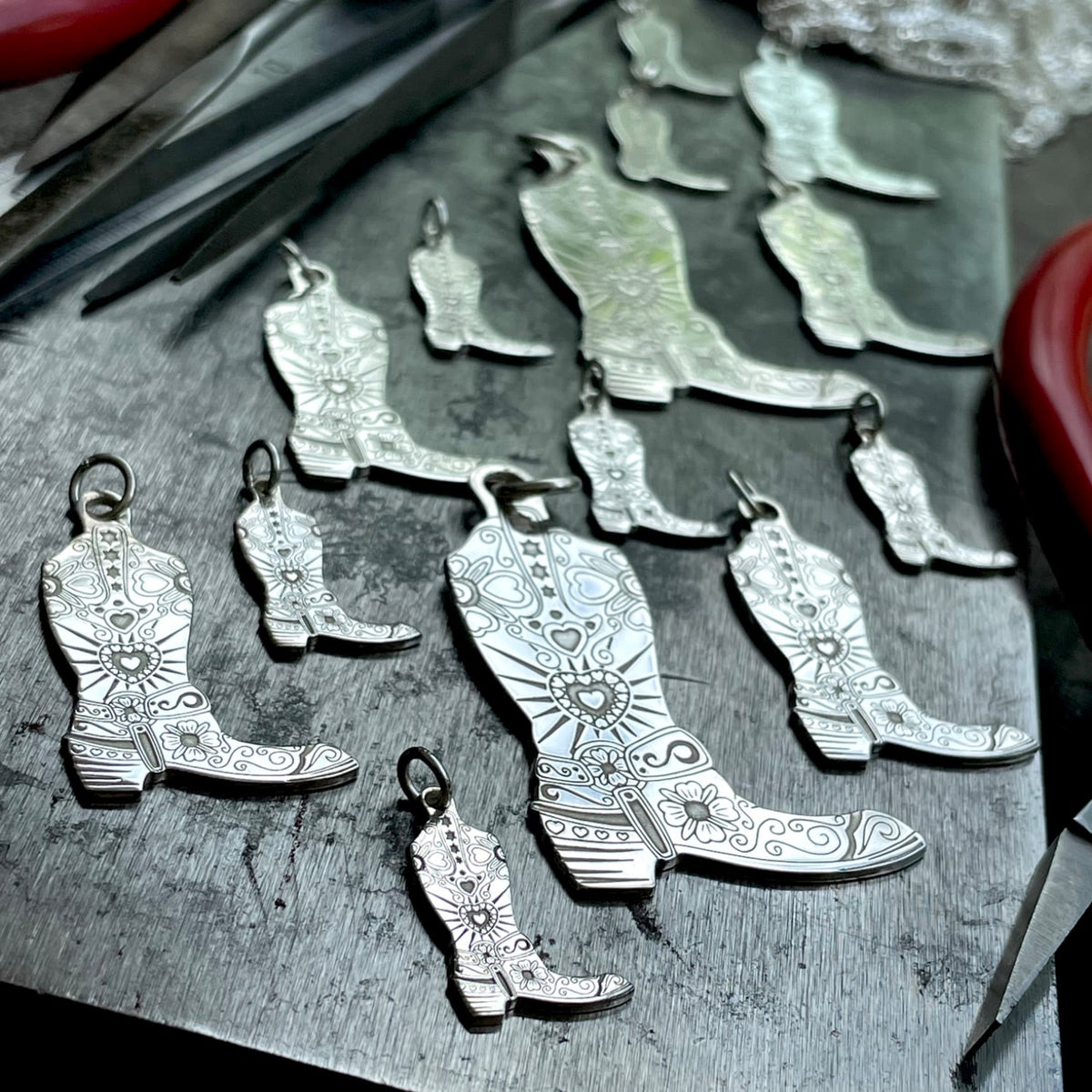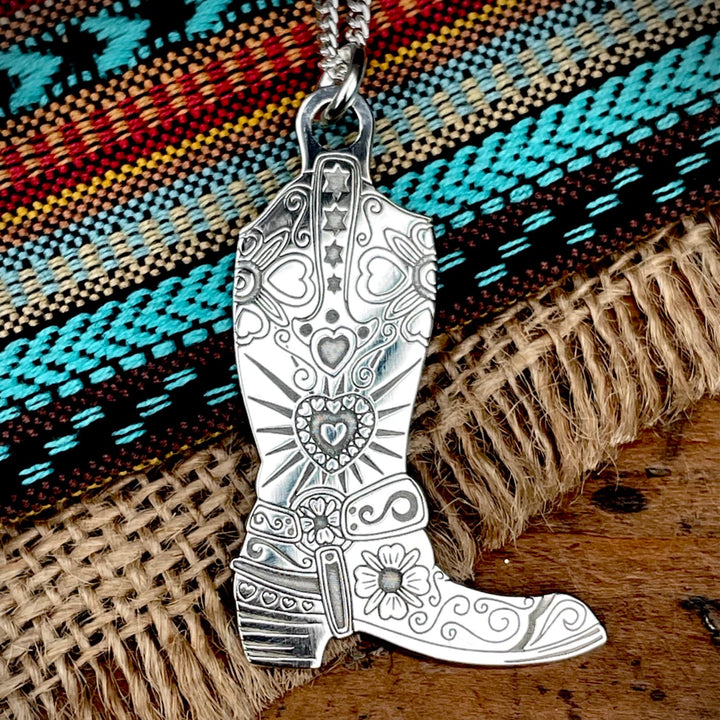 This pendant is made of solid gold and is in the shape of a medium-sized cowboy boot.