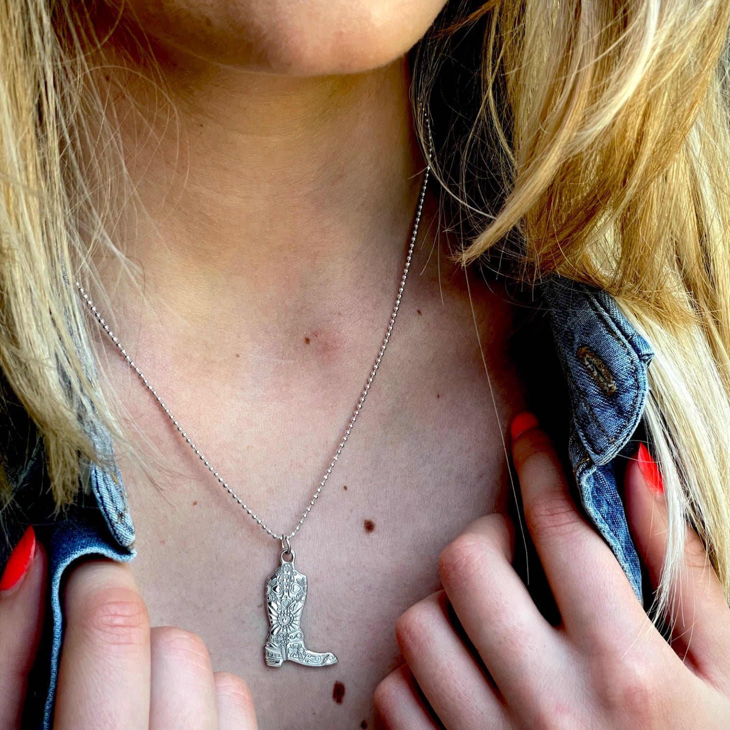 The Medium Solid Gold Cowboy Boot by Cartergore is a playful and trendy pendant. This medium-sized solid gold cowboy boot is a contemporary take on the western trend. It's a fun and free-spirited piece for the wild at heart that adds a unique touch to your outfit.