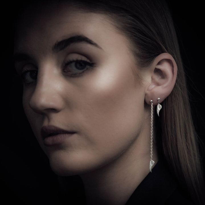 This Gold Wing Single Long Drop Earring by Cartergore is a unique and edgy piece from the Tattoo Candy collection. Sold as a single earring, it’s tailored to your individuality, allowing you to mix and match styles to build your own story. The wing motif offers a blend of premium beauty and a unique edge.
