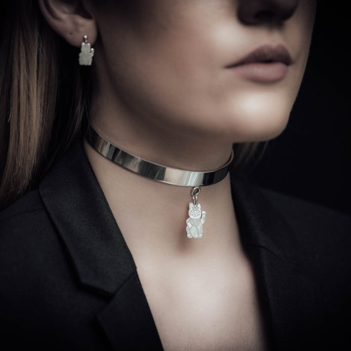 This Gold Lucky Cat Single Long Drop Earring by Cartergore is a playful and personalized piece from the Tattoo Candy collection. This single earring, with its charming lucky cat motif, is tailored to your individuality and designed to be mixed and matched. Its whimsical and unique edge allows you to build your own story, adding a touch of bespoke beauty and good fortune to your style.