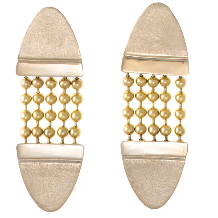 These earrings are cast from certified 100% recycled brass via lost wax casting and are combined with upcycled & vintage materials, including five rows of vintage brass ball chain.