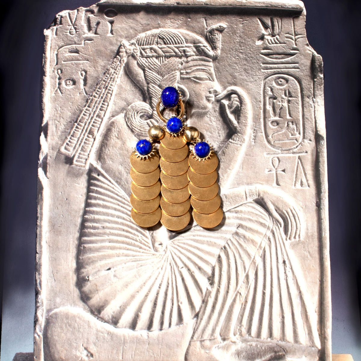 These Luxor Earrings in Sea by Castlecliff are an elegant and luxurious statement piece. Set within an arch adorned with vintage glass stones, a cascade of vintage golden discs tumbles down like a waterfall, creating a graceful movement that is sure to captivate. These earrings are handcrafted from certified recycled brass and finished with a sterling silver post, making each pair unique and a beautiful expression of vintage-inspired artistry.