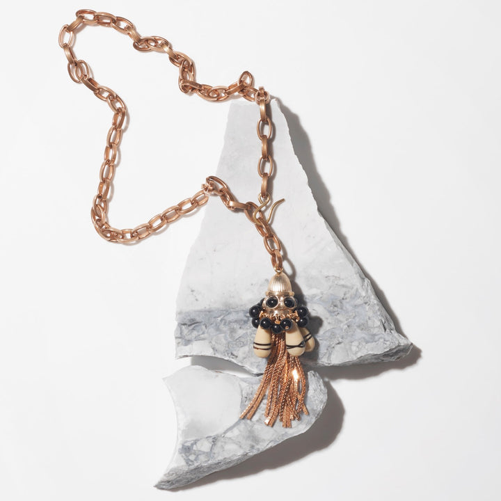 This Lore Pendant by Castlecliff is a favorite of the season, embodying movement, embellishment, and color. The tassel pendant, with its long and elegant drop, can be worn in multiple ways, offering versatility and unique style. Handcrafted by artisans using certified 100% recycled brass and vintage materials, this necklace is a beautiful and sustainable piece that celebrates artistry and ethical design.