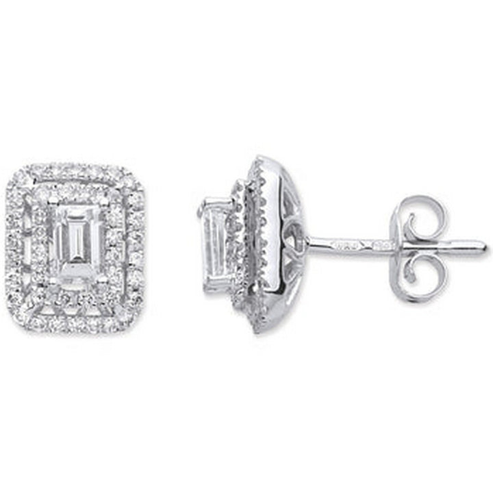 White Gold Emerald Cut Rectangular Stud Near One Carat