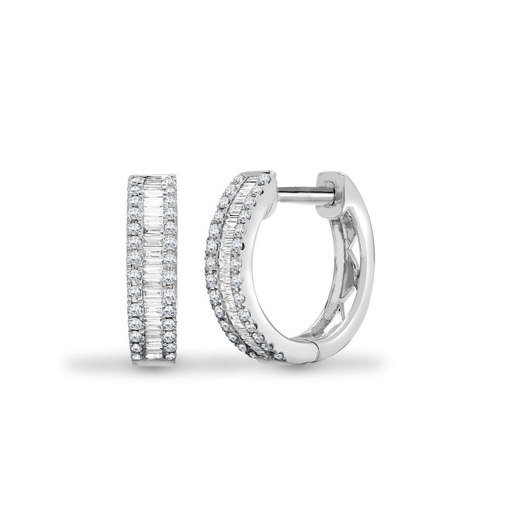White Gold Round & Baguette Diamond Earrings Hoops