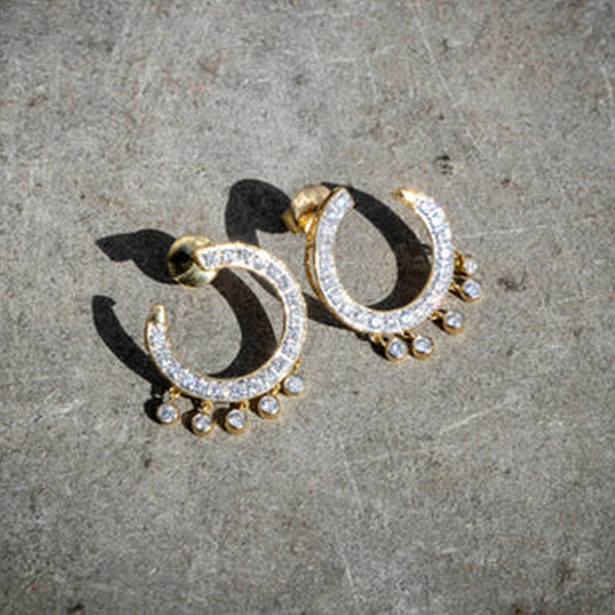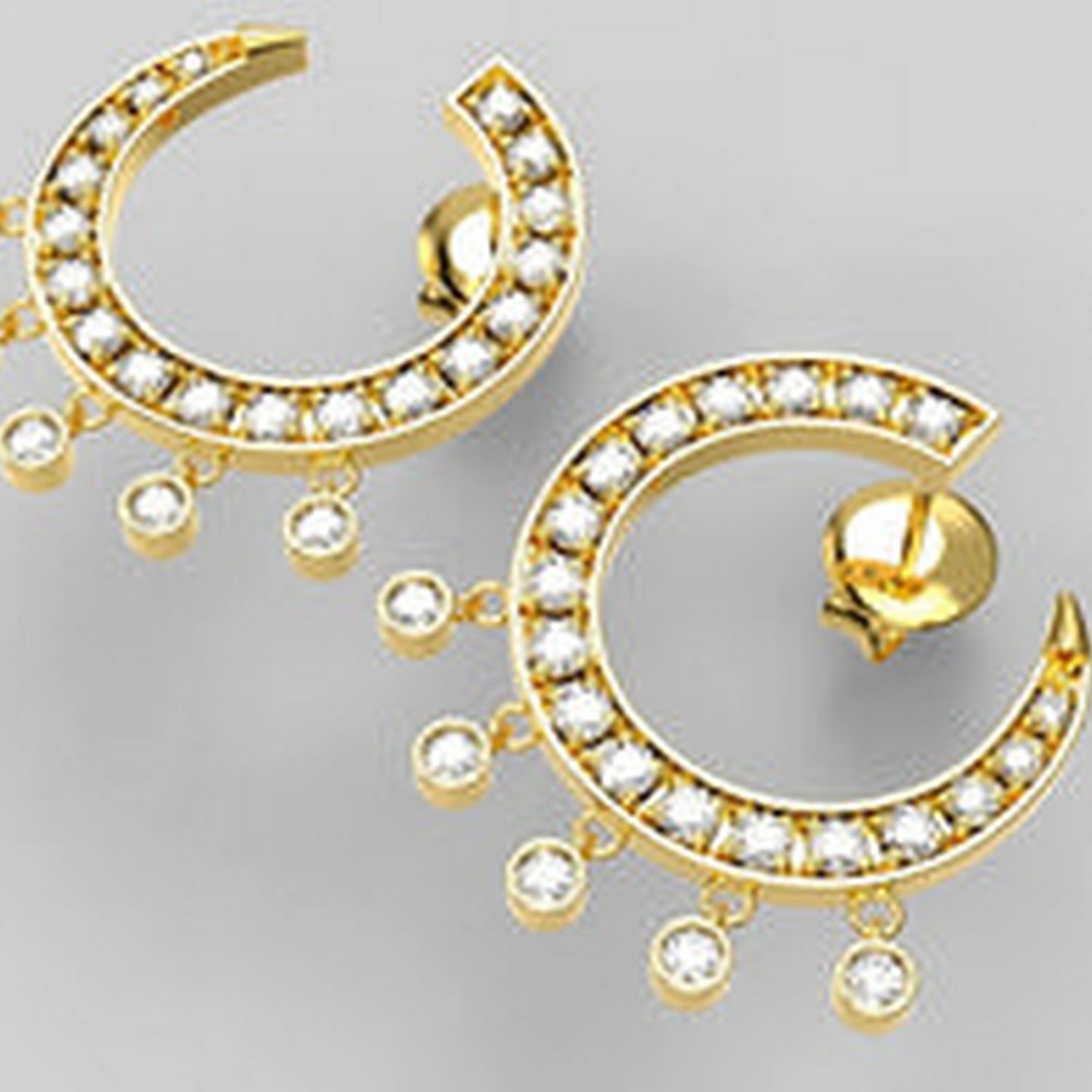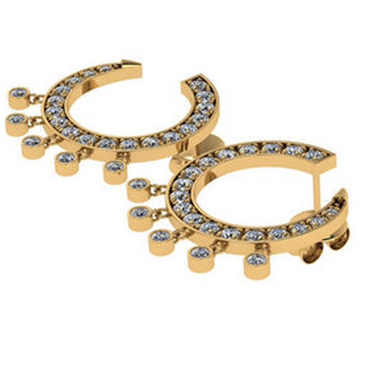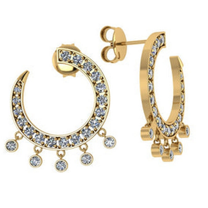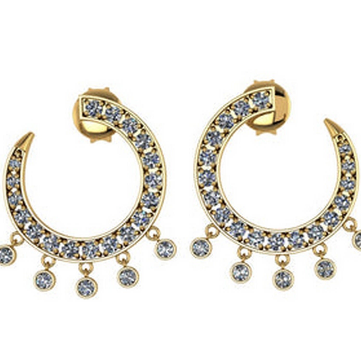 Yellow Gold Curve Diamond Earrings - Front To Back.